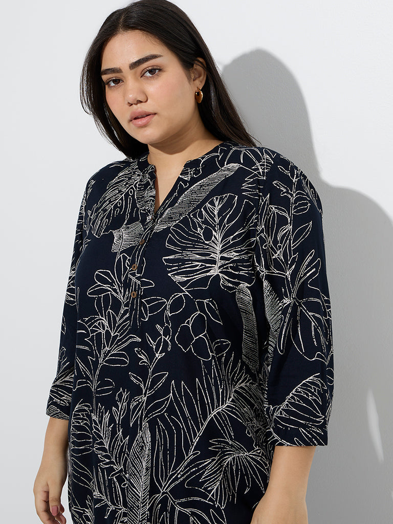 Diza Black Foliage Printed Tunic