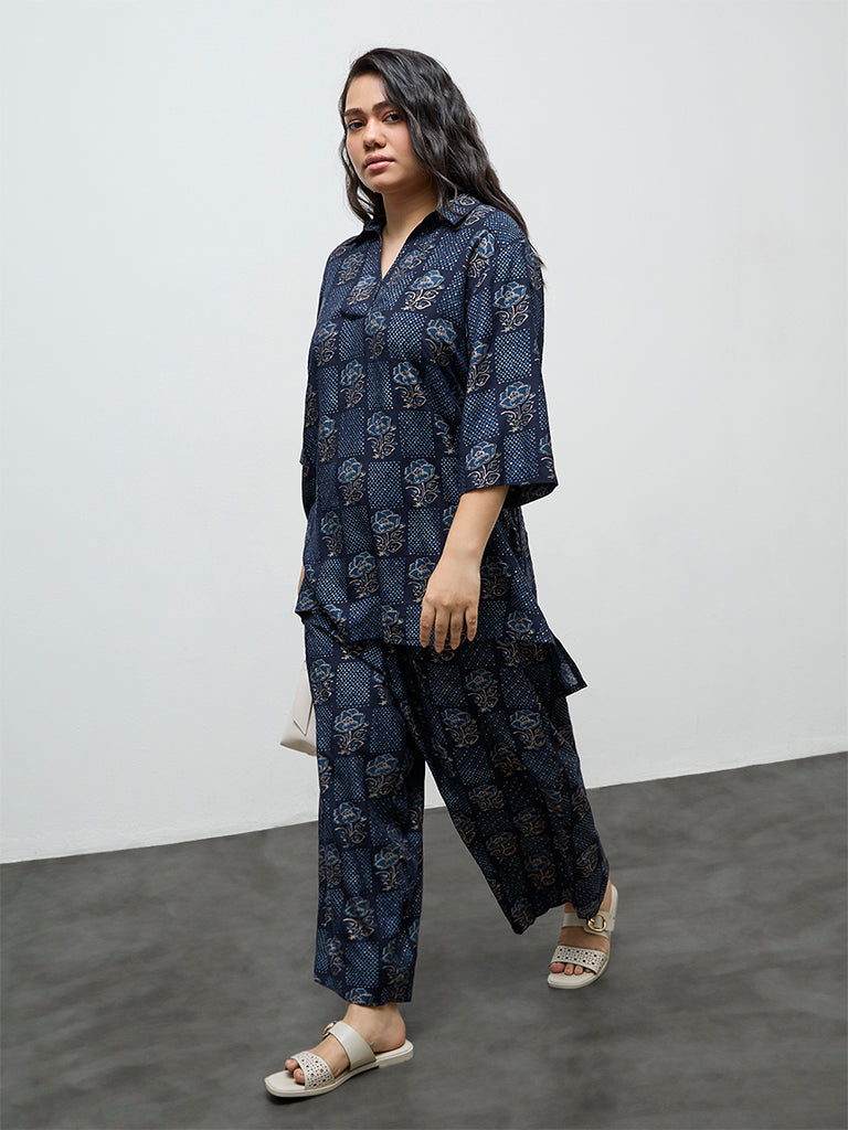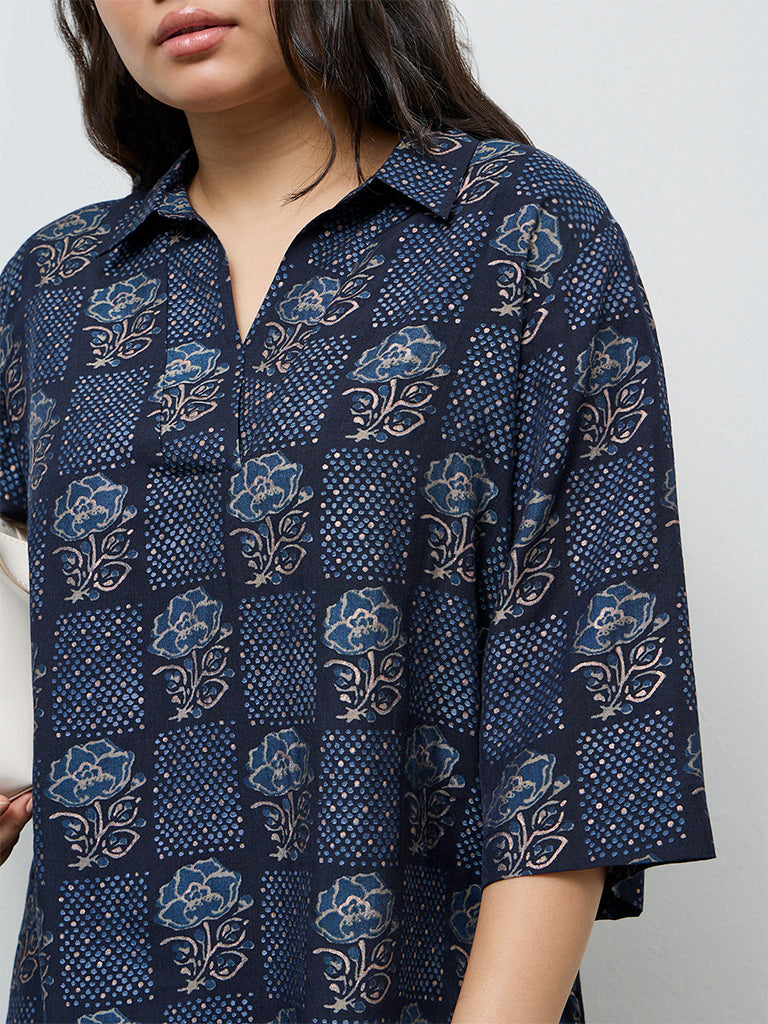 This dark blue tunic from Diza is designed with a focus on everyday ease, woven from a breathable fabric offering sumptuous comfort. It falls in a high-low silhouette that adds subtle movement, styled with a V-neck and half sleeves complete the design with a simple finish. A neat option for pairing with straight trousers or leggings.