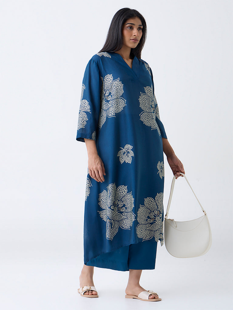 Diza Teal Solid Ethnic Pants