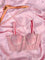 The baby pink hue radiates soft charm and playful femininity. Viscose zari shimmers with a delicate, liquid glow. Zari stripes and gota lace detailing add tactile sparkle and intricate rhythm. The corset structure sculpts the silhouette flawlessly. A sleeveless cut frames the arms with grace. The back hook ensures a seamless fit.