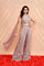 The dusty mauve tissue silk embroidered indo-western set with pearl work and matching georgette dupatta for a stylish charm with traditional touch.