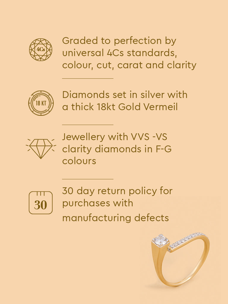 Stand out with this edgy lab diamond solitaire ring. Made in gold vermeil, it combines bold design with stunning brilliance for a striking statement.