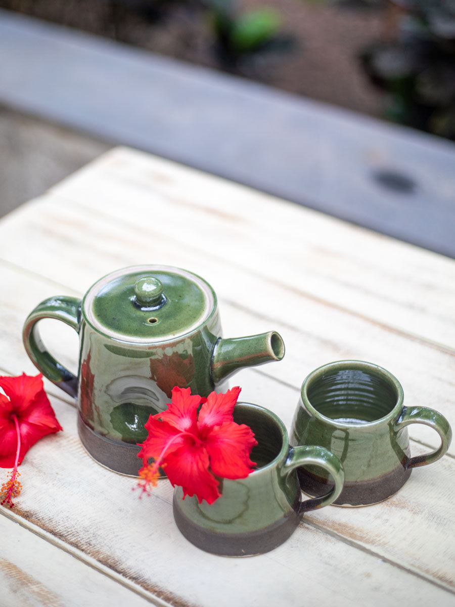 Emerald Hand-Thrown Dimpled Ceramic Tea Pot