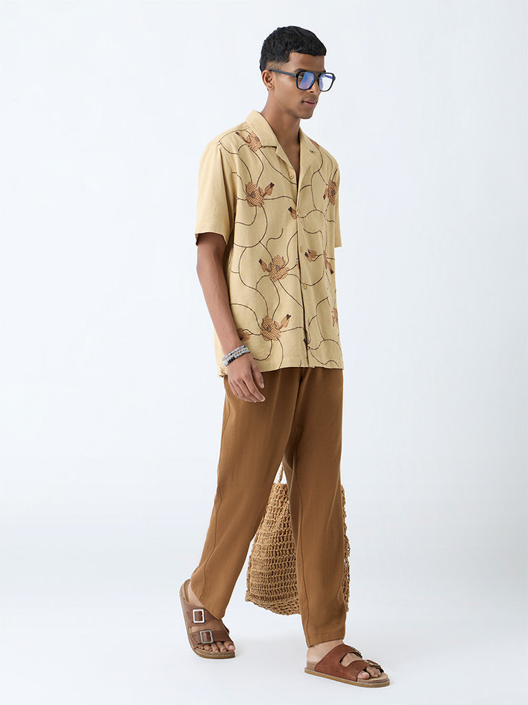 ETA Beige Floral Embroidered Relaxed-Fit Cotton Shirt