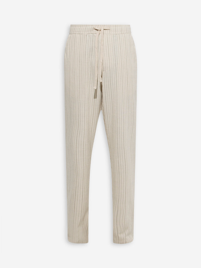 ETA Beige Striped Relaxed-Fit Mid-Rise Cotton Chinos