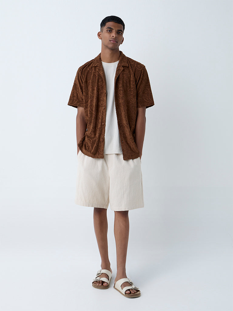 ETA Dark Brown Paisley Relaxed-Fit Cotton-Blend Shirt