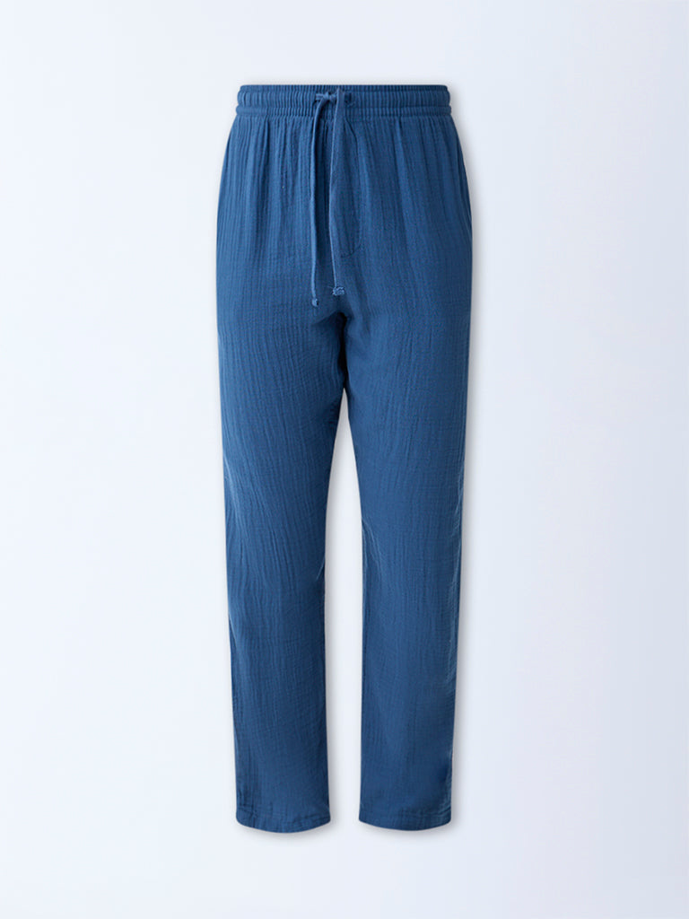 Made for easy days and everyday plans, these indigo trousers from ETA combine comfort with considered style. Spun from pure cotton in a relaxed fit, they feature an elasticated waistband with adjustable drawstrings for a personalised fit. Finished with multiple pockets, they bring practicality to the forefront without compromising on ease.