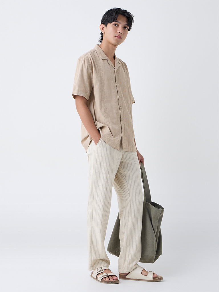 ETA Light Beige Embroidered Relaxed-Fit Cotton Shirt