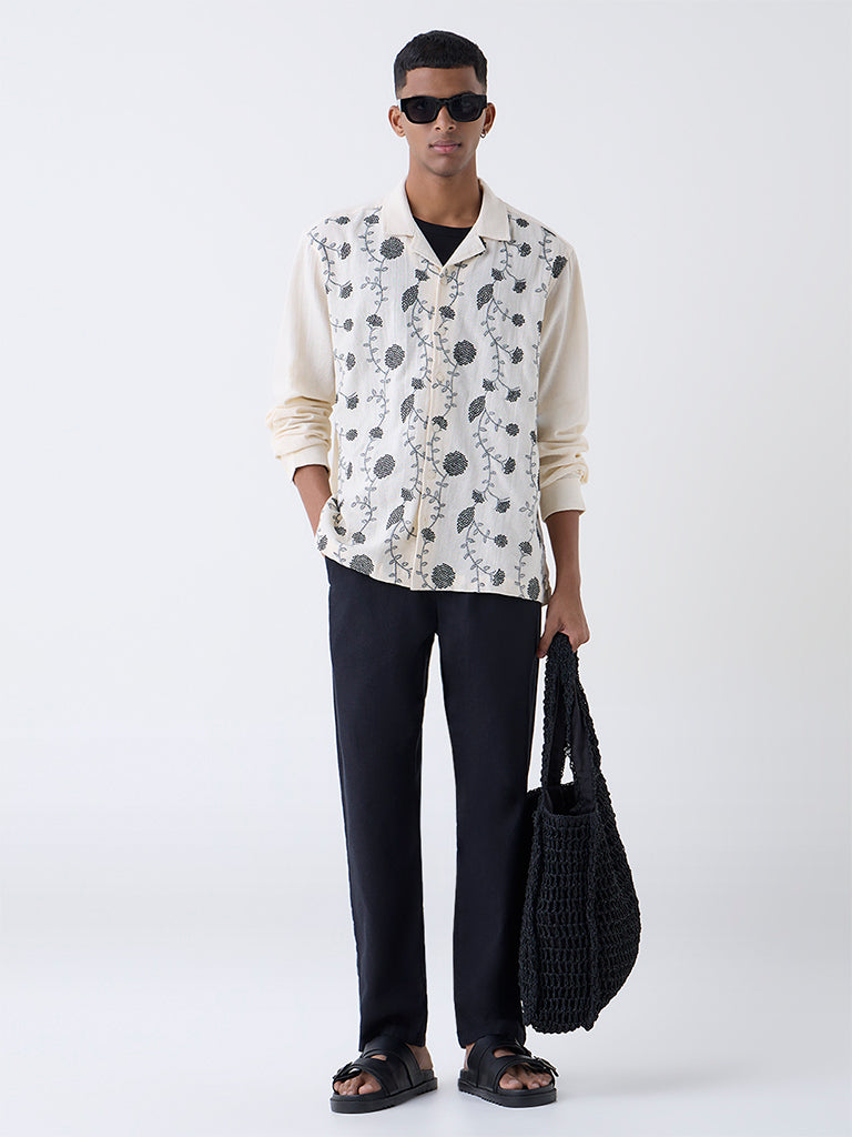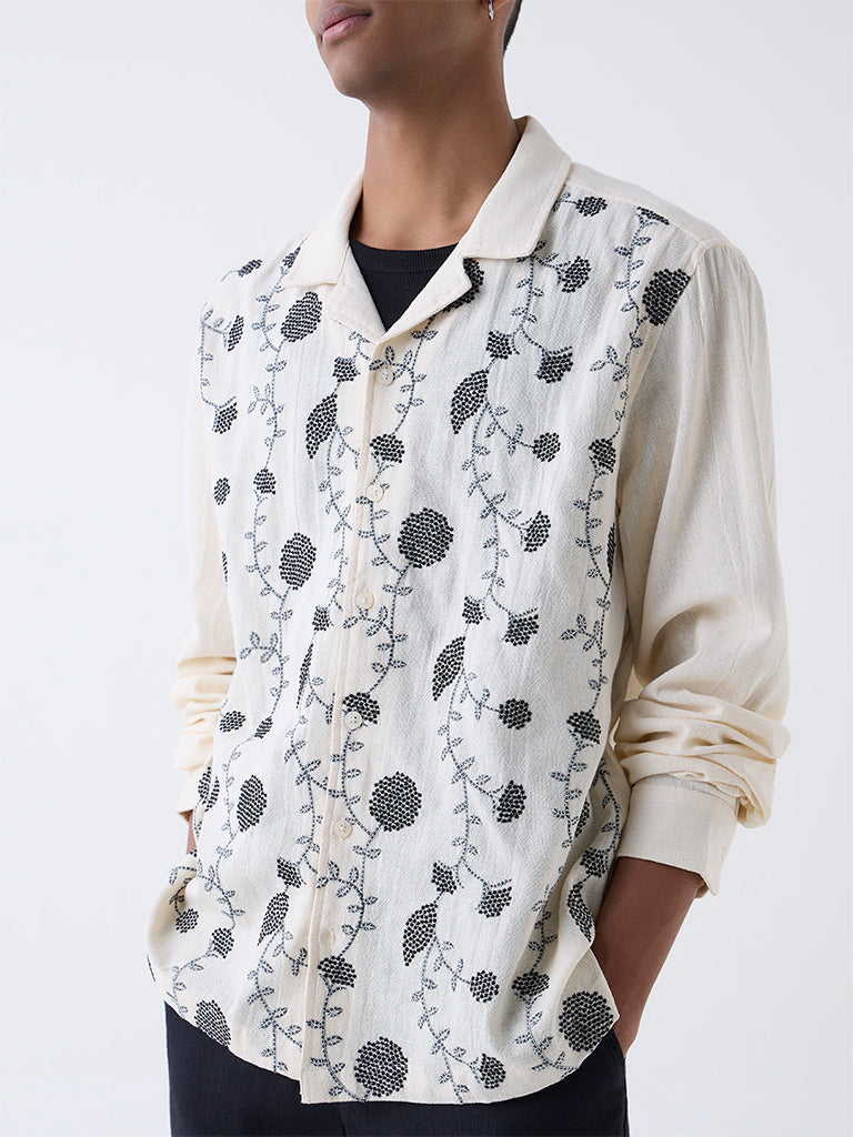 ETA Off-White Floral Embroidered Relaxed-Fit Cotton Shirt