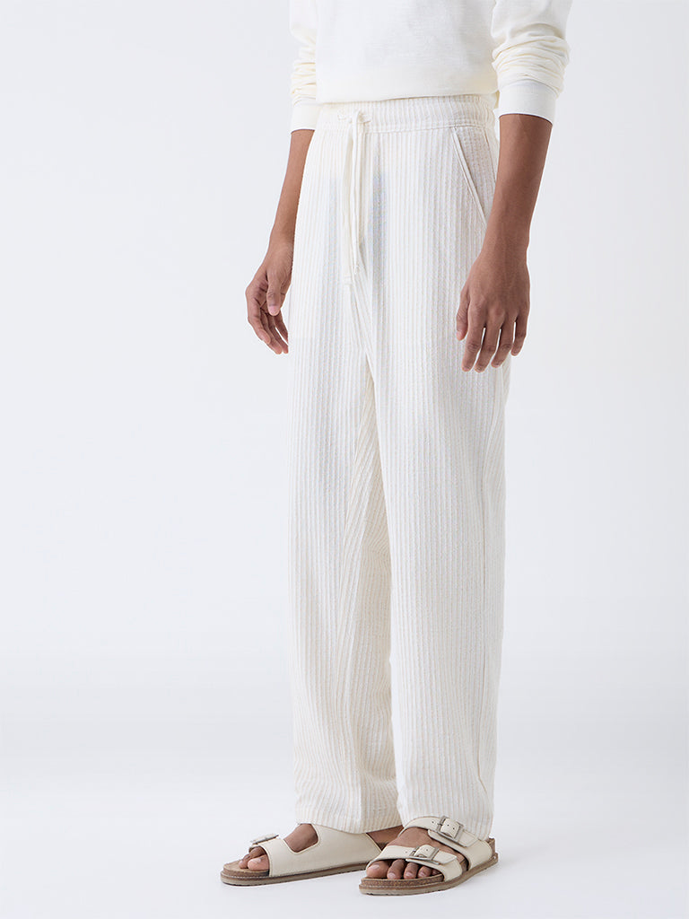 ETA Off-White Striped Relaxed-Fit Mid-Rise Cotton Pants
