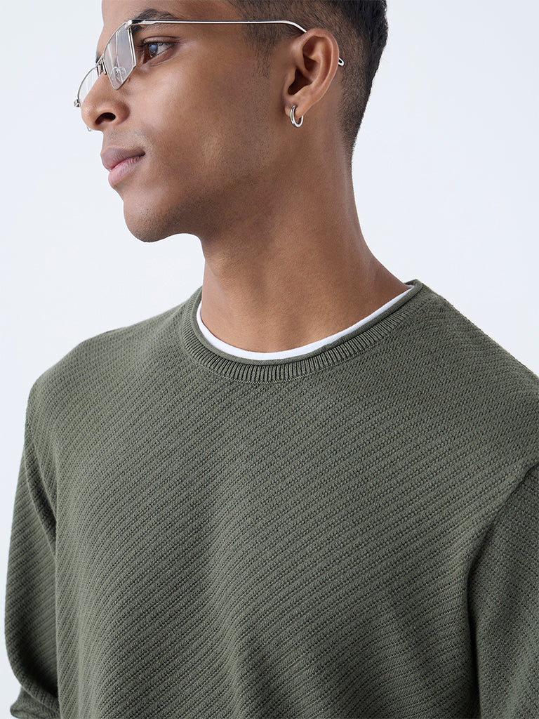 ETA Olive Textured Relaxed-Fit Cotton Sweater