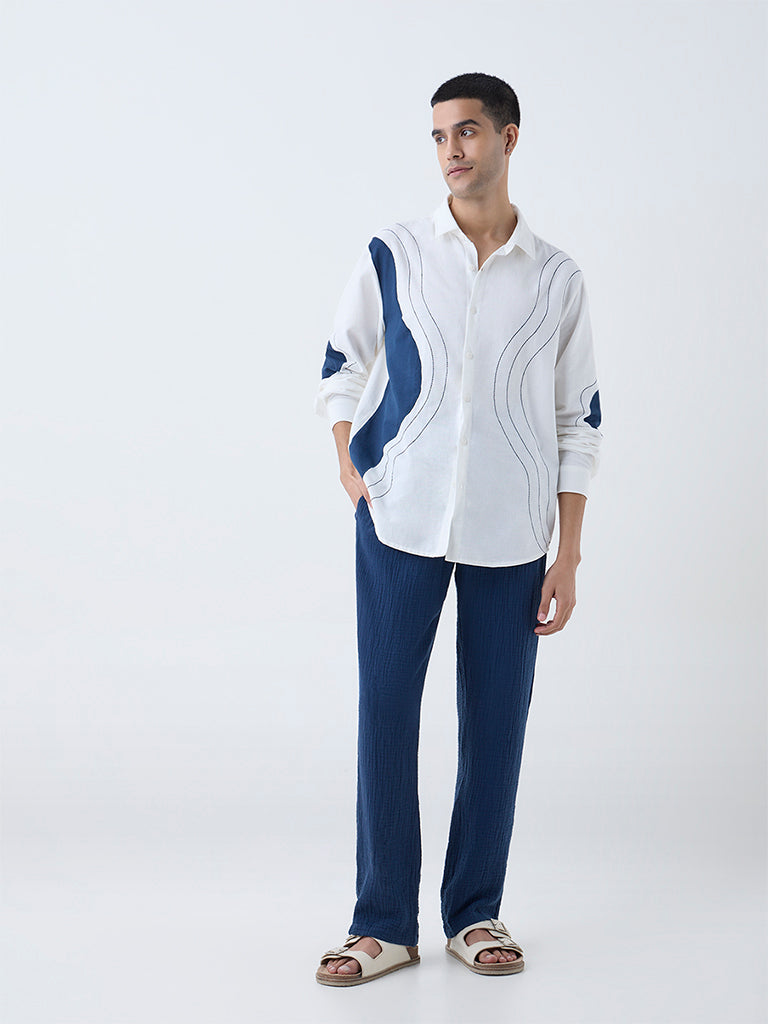 Stand out effortlessly with this white shirt from ETA. Tailored from a sumptuous cotton-blend fabric in a relaxed profile, it flaunts abstract detailing for an artistic edge. Finished with a spread collar, long sleeves, and a button placket, this versatile piece blends comfort with modernity.