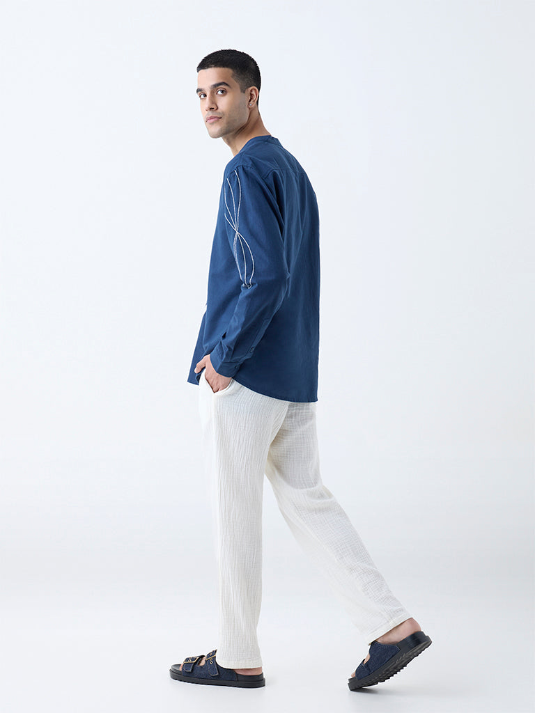 ETA White Textured Relaxed-Fit Mid-Rise Cotton Chinos