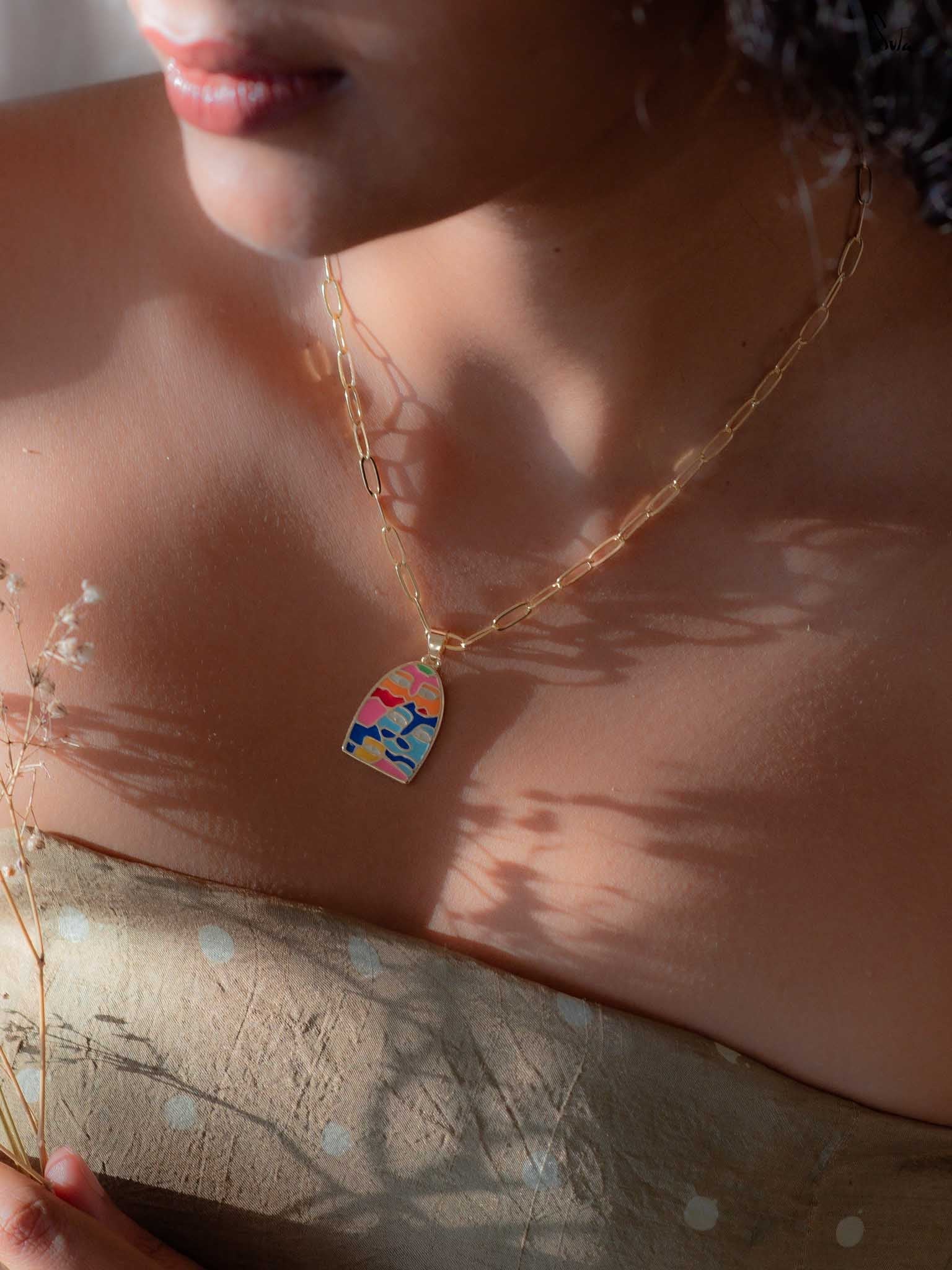 Micro-gold clasp pendant with enamel work in silver-brass alloy. Like wearing an artsy, sassy, and sweet wink. For all day, every day!