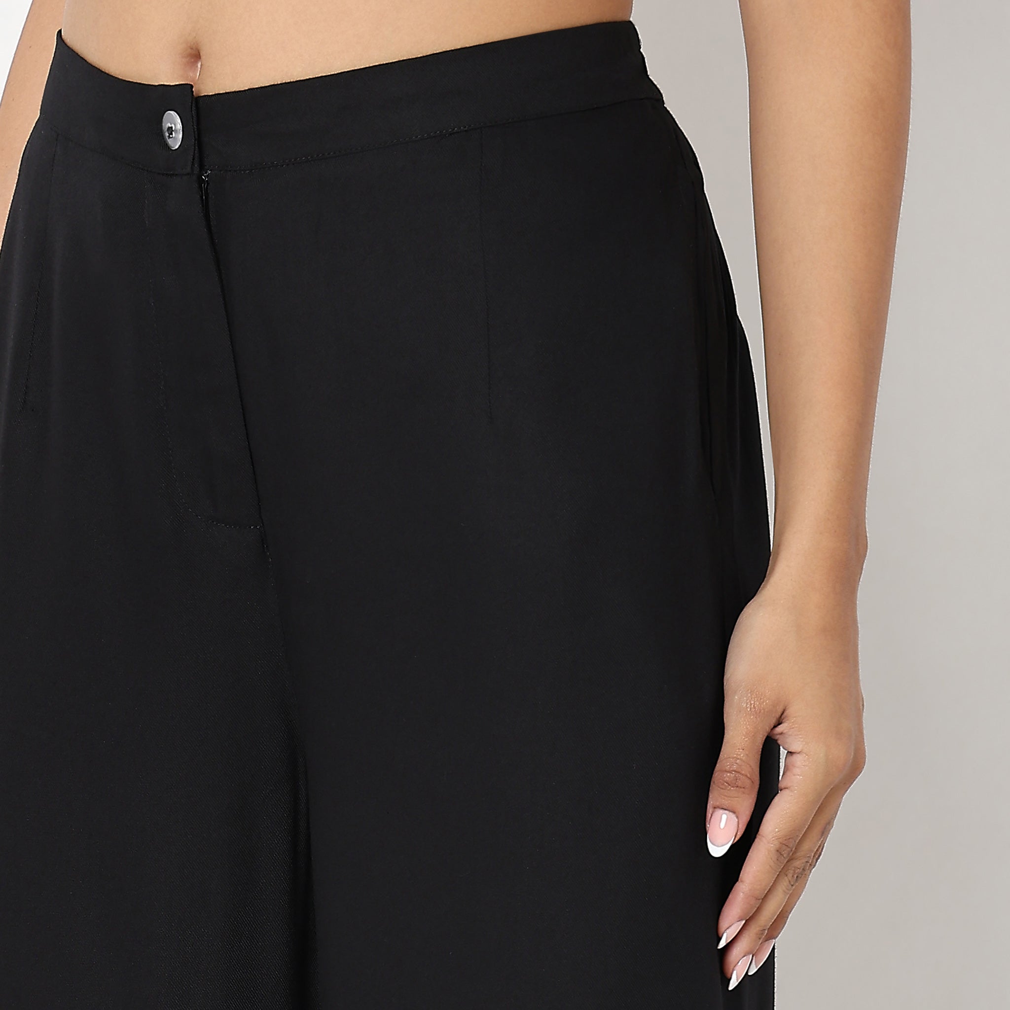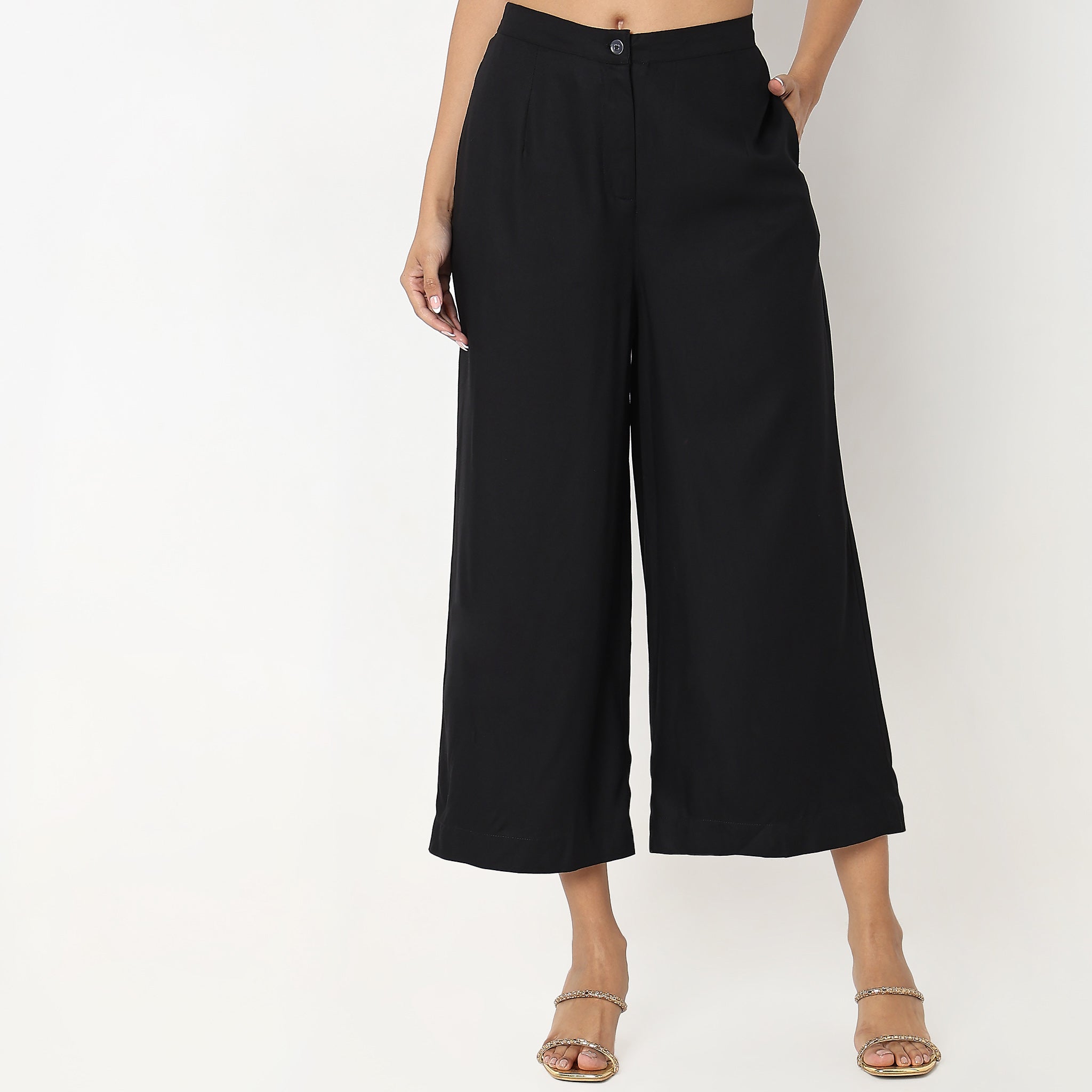 These harem pants theme, solid pattern flare fit culottes has ankle length, high rise waist. Made from viscose, it is soft and comfortable to wear.