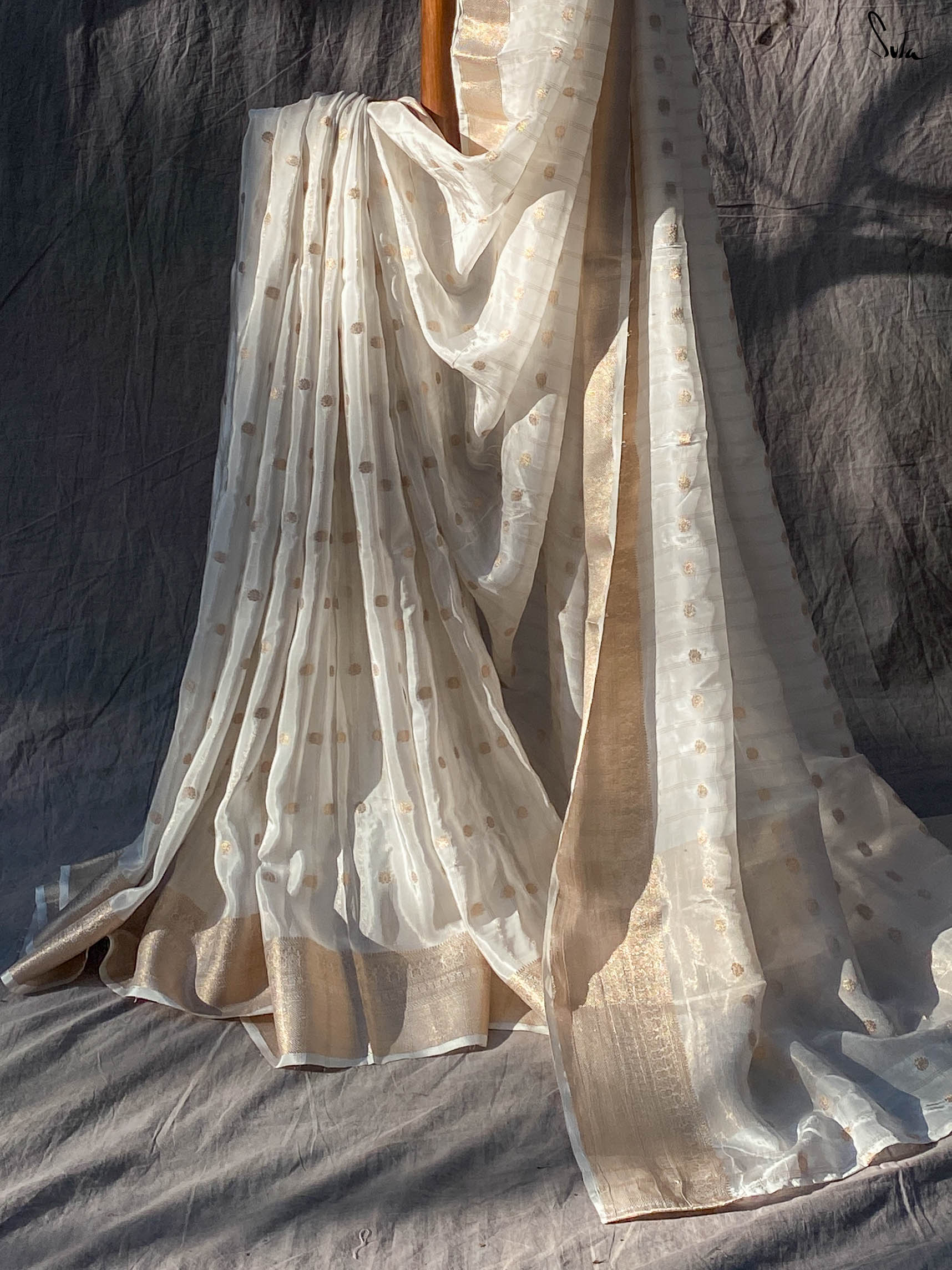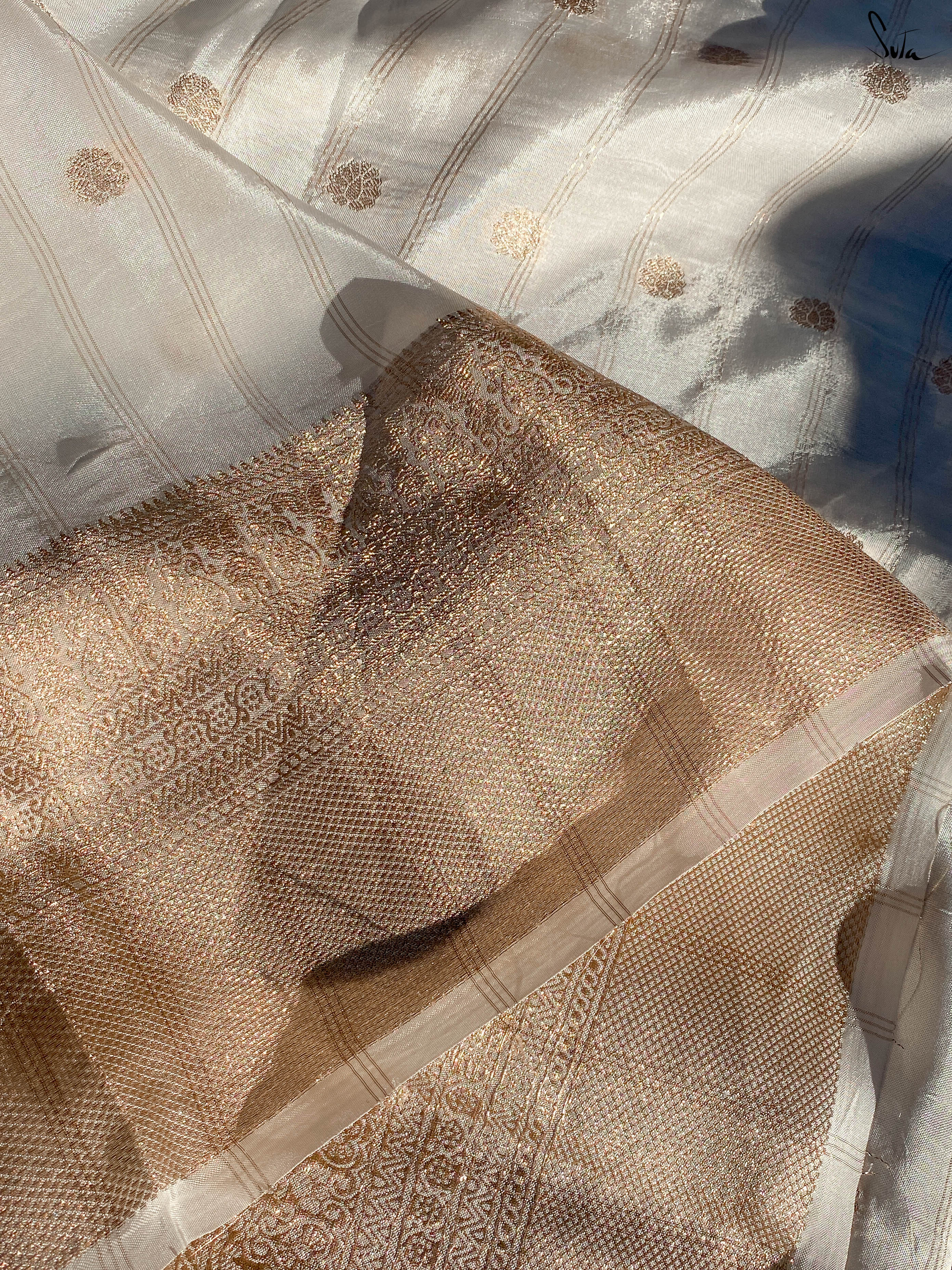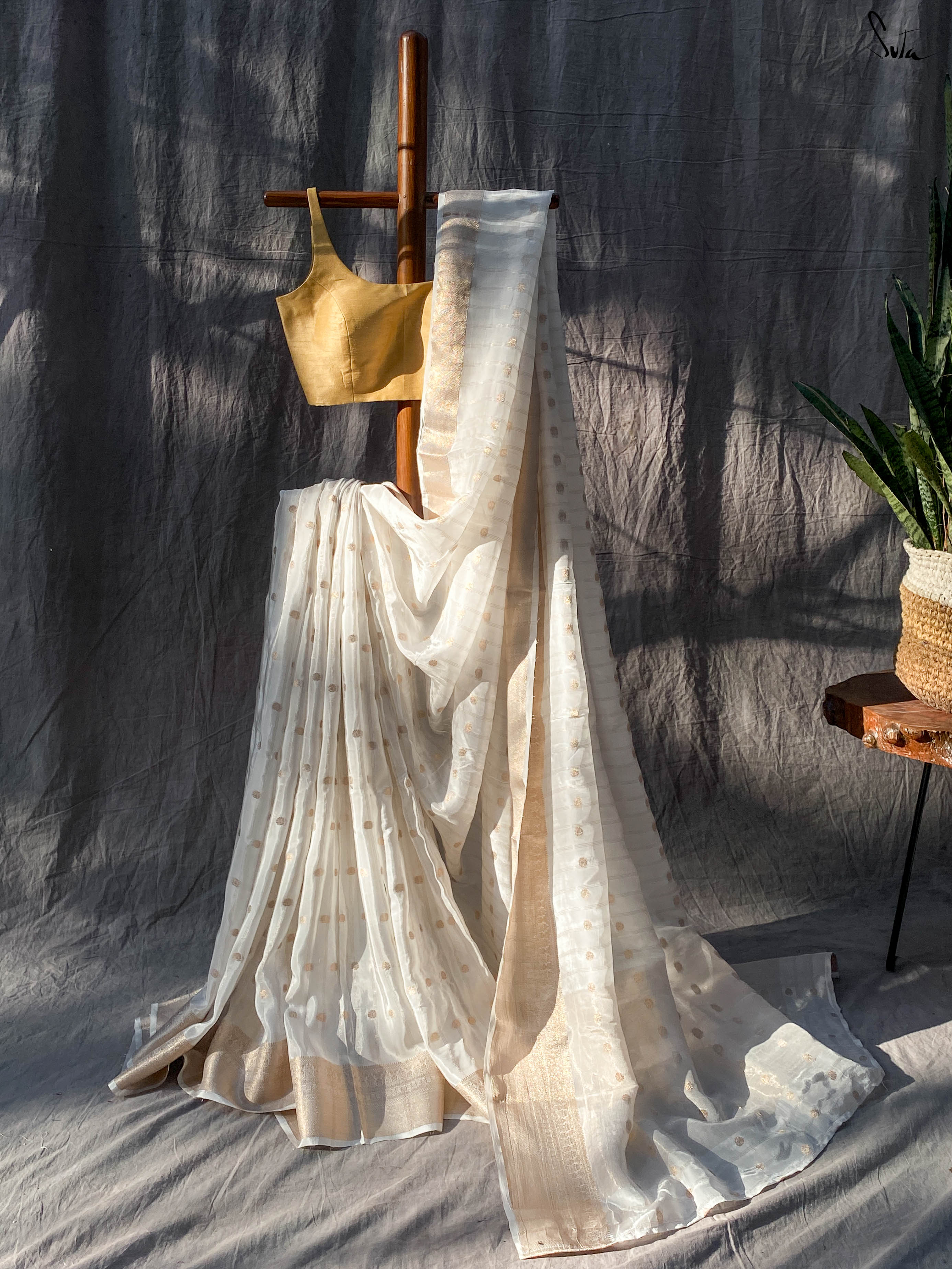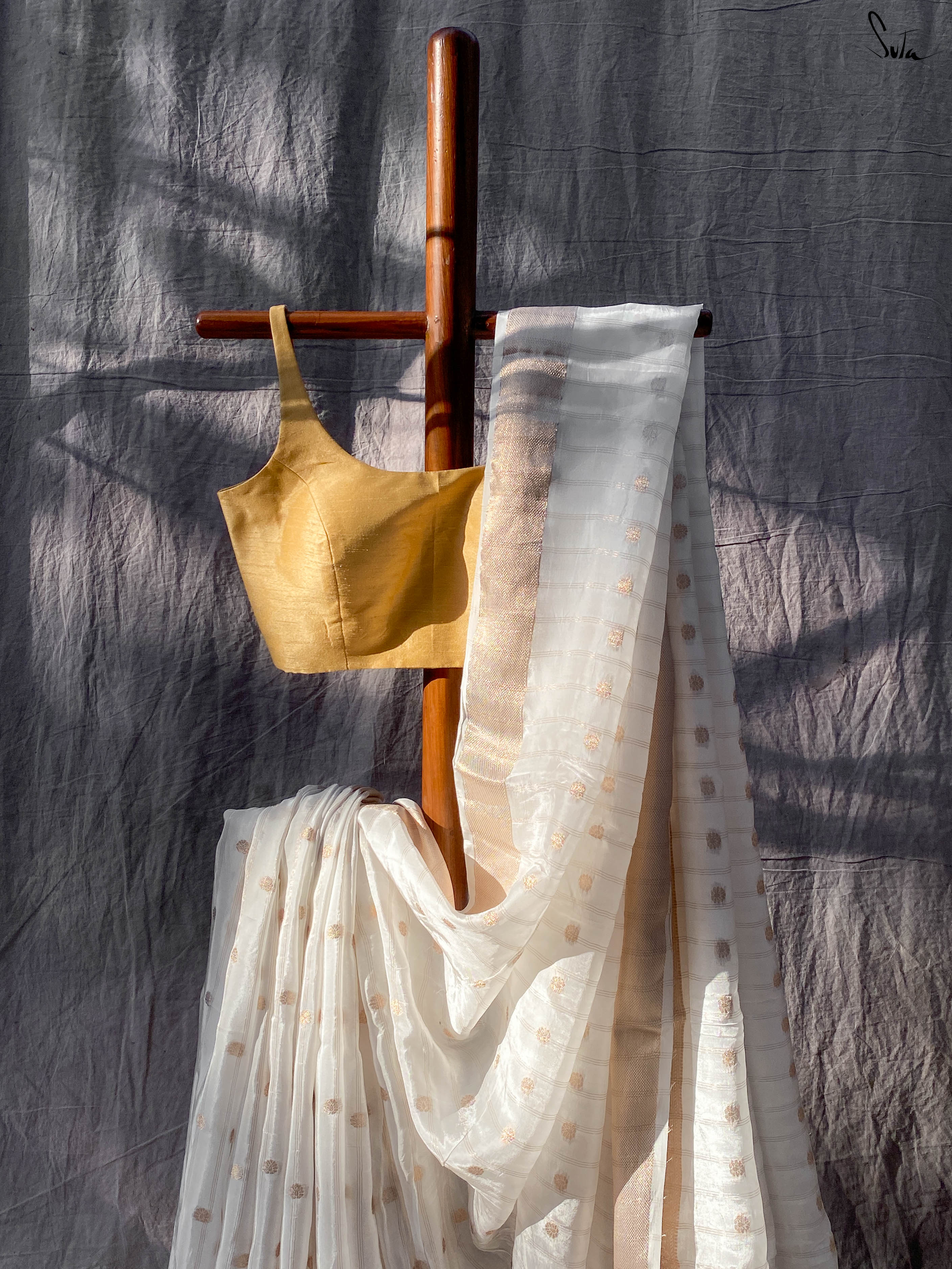 Cotton silk, a durable and rich fabric, is a blend of cotton and silk. Clothes made of this fabric are lightweight, soft, breathable, and have an elegant sheen. This hybrid fabric is especially popular as it can be worn with comfort and ease during both summers and winters. The fabric is embellished with delicate zari details, to add a regal touch.