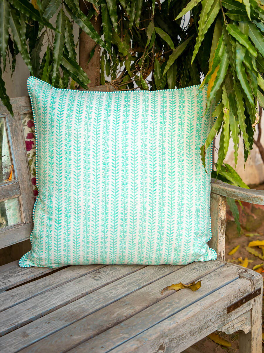 Fruits of Paradise Block Printed Cotton Cushion Cover - 24 Inch