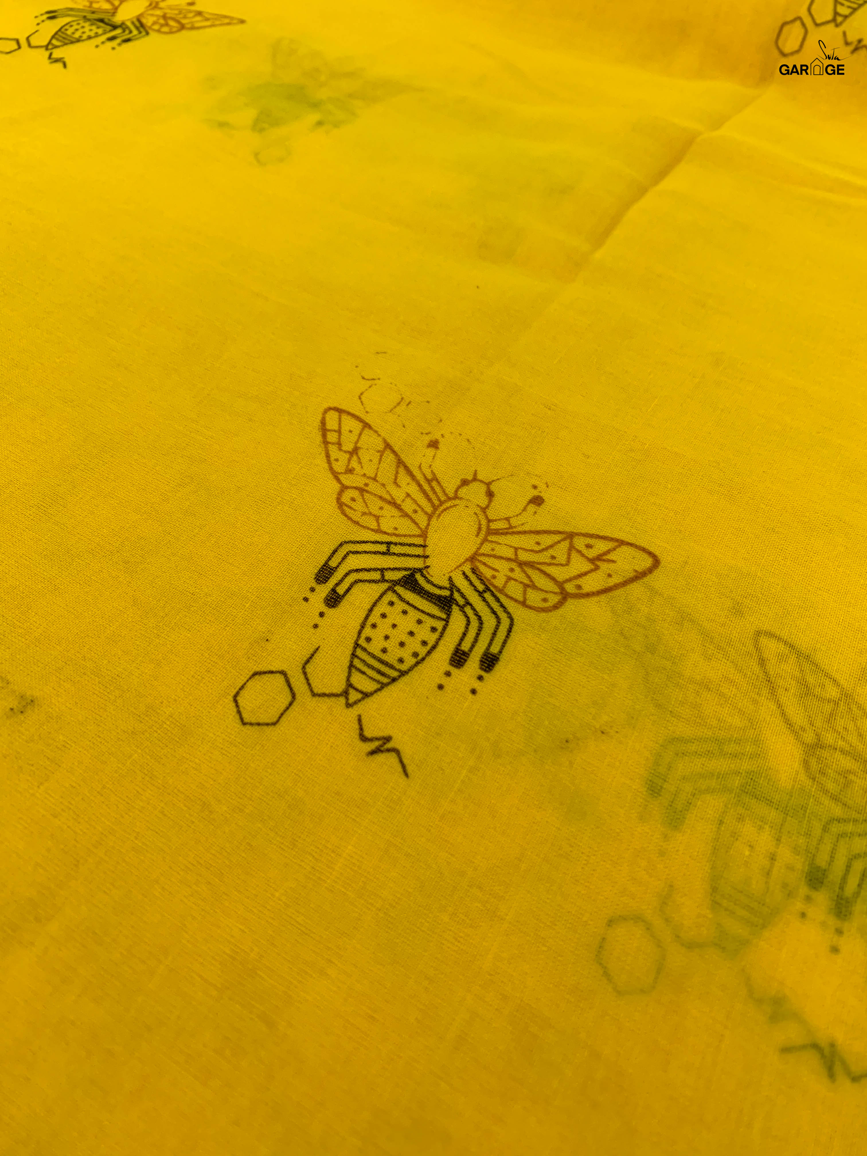 The block-printing on this saree is done on a made-in-heaven mul cotton fabric which is lighter than air and loved by our Suta Queens immensely.