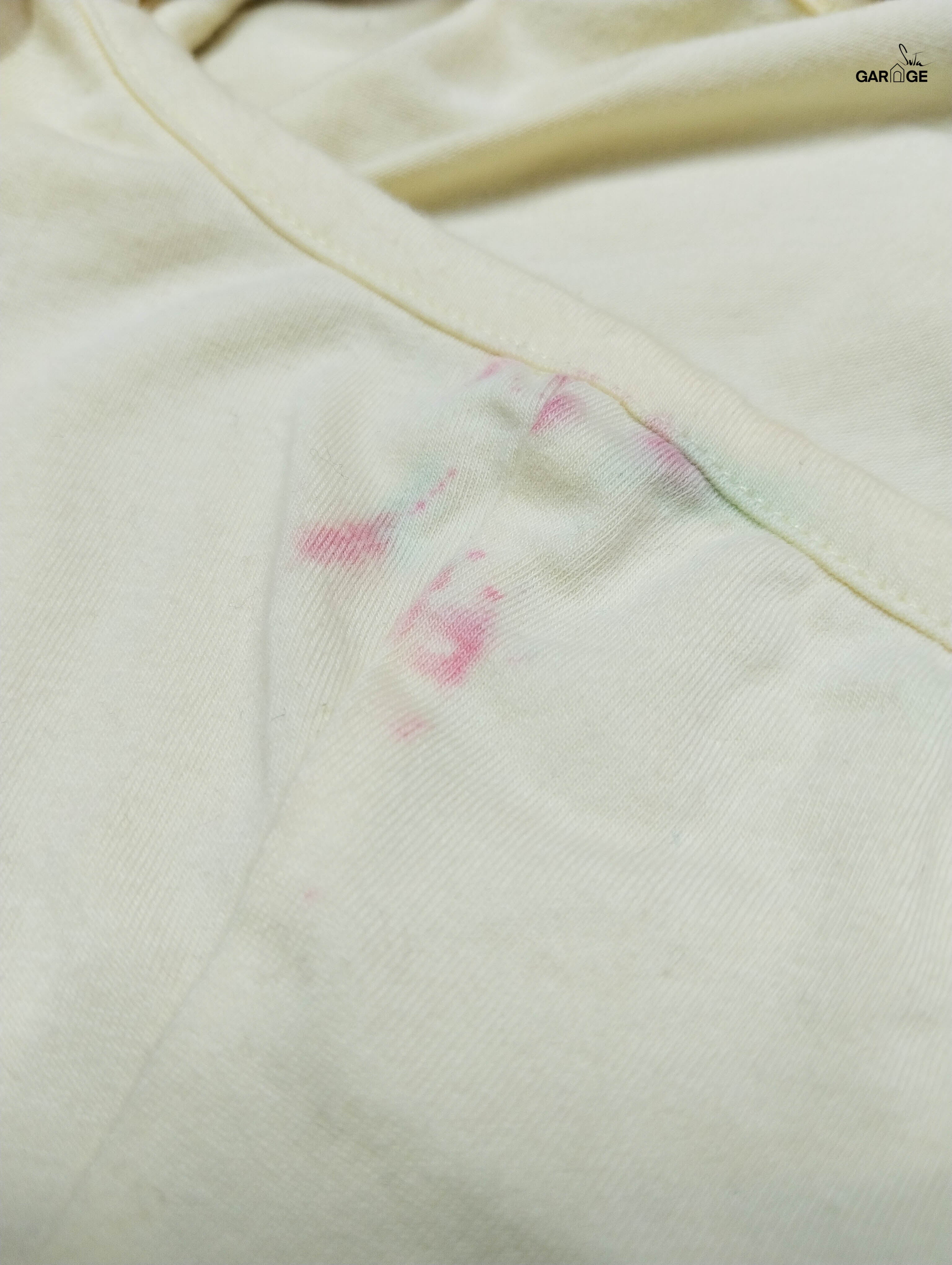 Defect : Red stain in left armhole and waist area