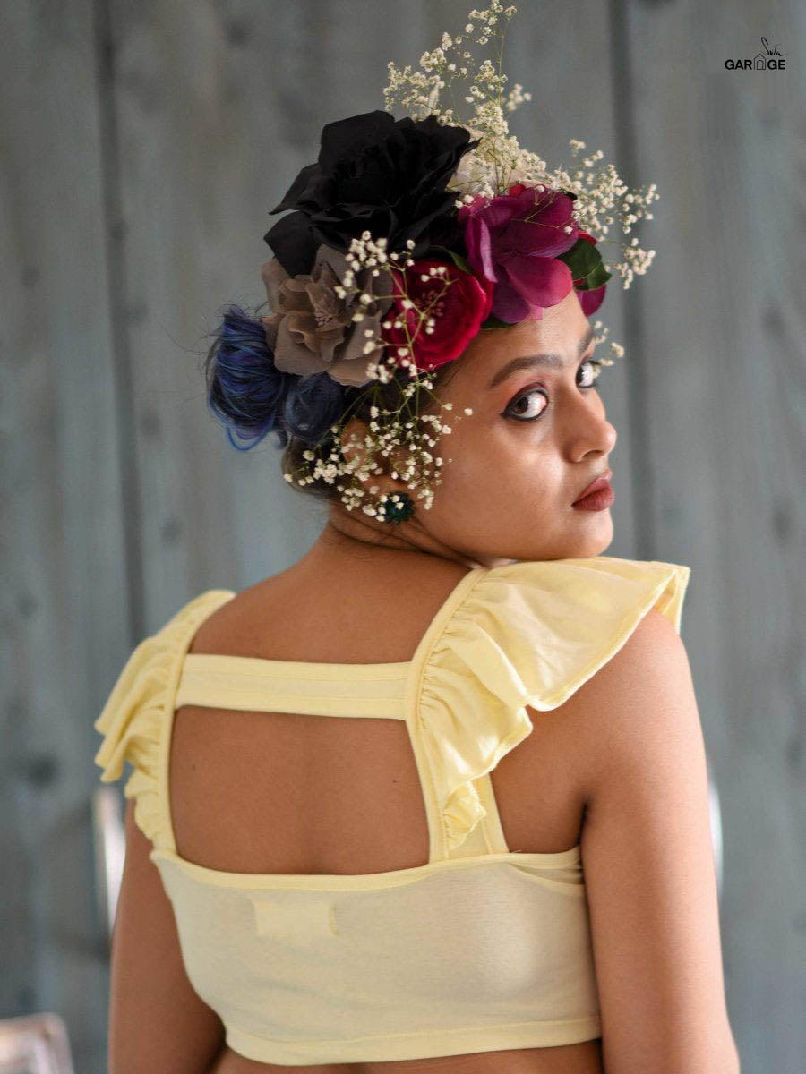 Su, the model is wearing size S blouse and saree is The Lush Emralds.