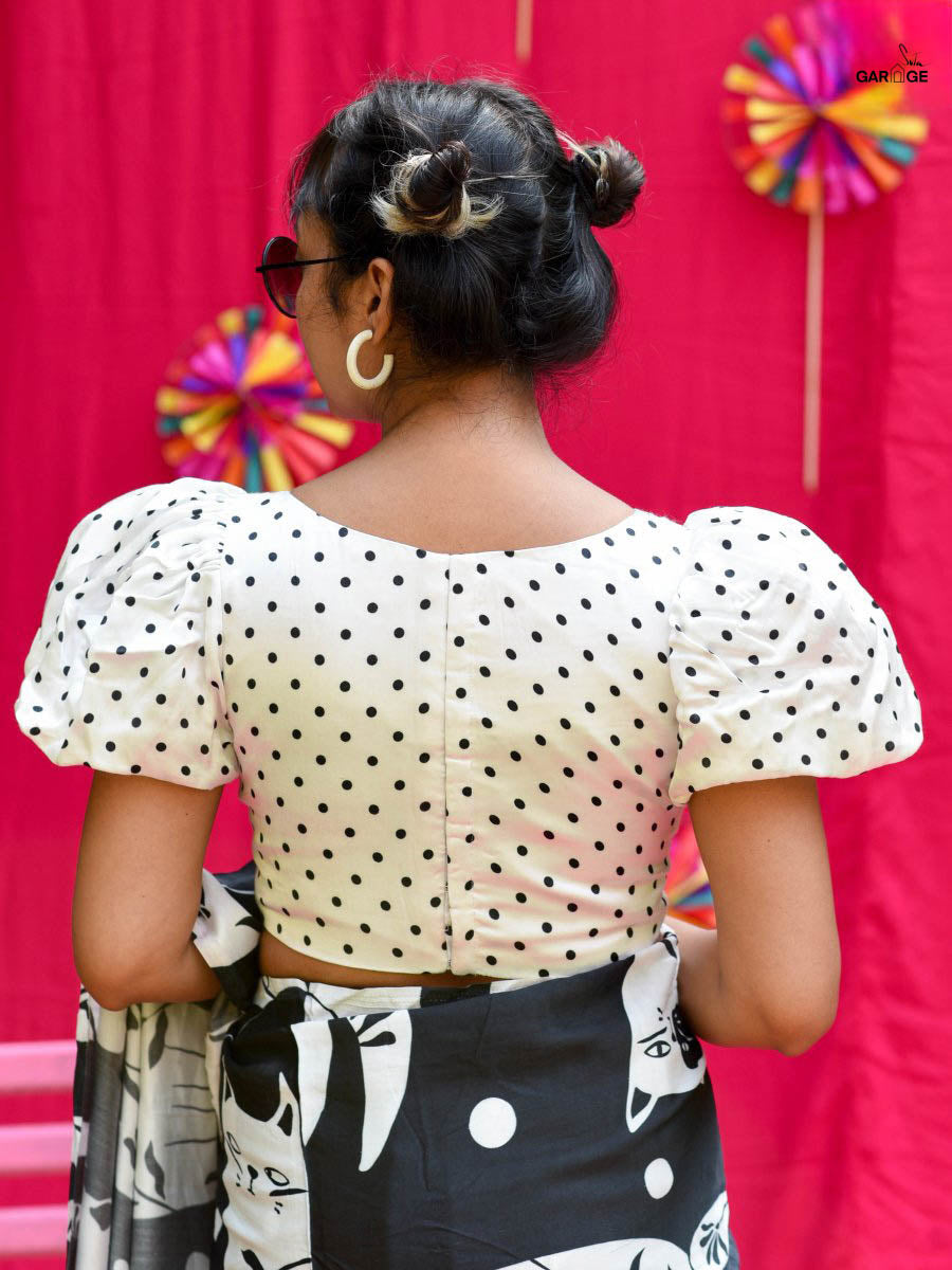 Ta, the model is wearing sizes blouse and saree is Meow Wow