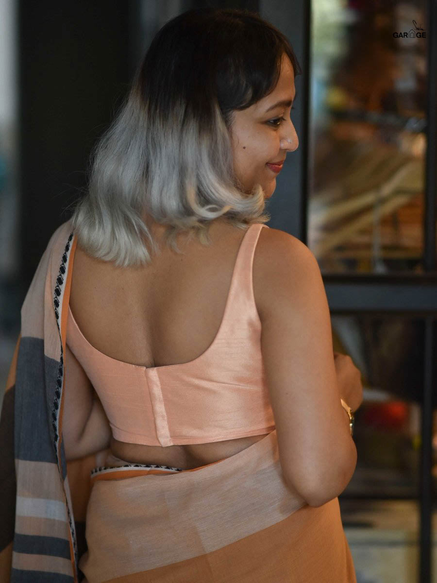 Ta, the model is wearing a size M blouse and the saree is Exuberant-O-Clock