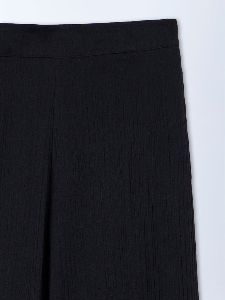 Gia Black Crinkle-textured High-Rise Cotton Pants