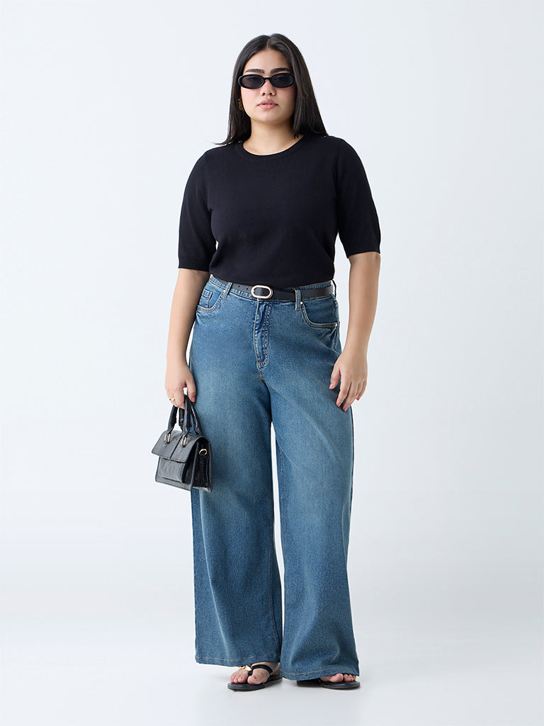 In sleek black, this t-shirt from Gia makes a case for understated statement dressing. The ribbed round neck and half sleeves keep it classic, while gold-toned shoulder buttons add a touch of high-end sophistication.
