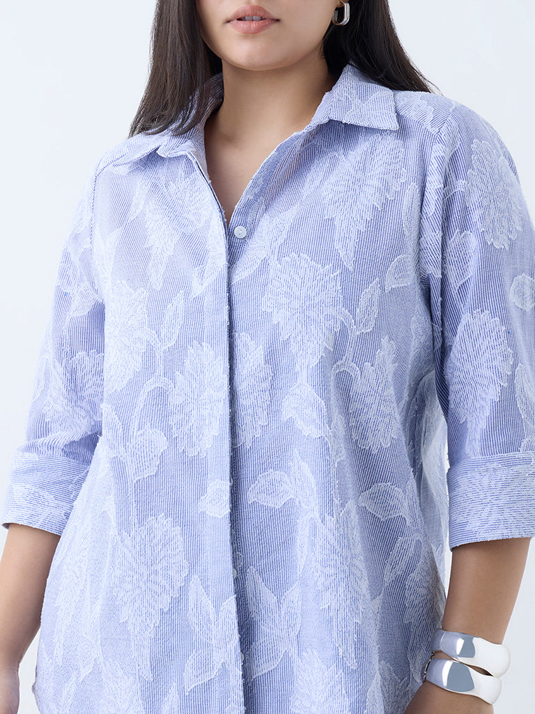 Bring a touch of nature to your wardrobe with this blue shirt from Gia, adorned with elegant botanical prints. Designed with a smart collar, concealed button placket and three-quarter sleeves, it’s a graceful addition to your off-duty style rotation.