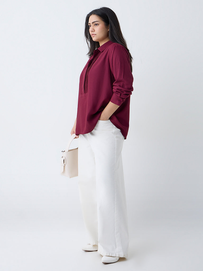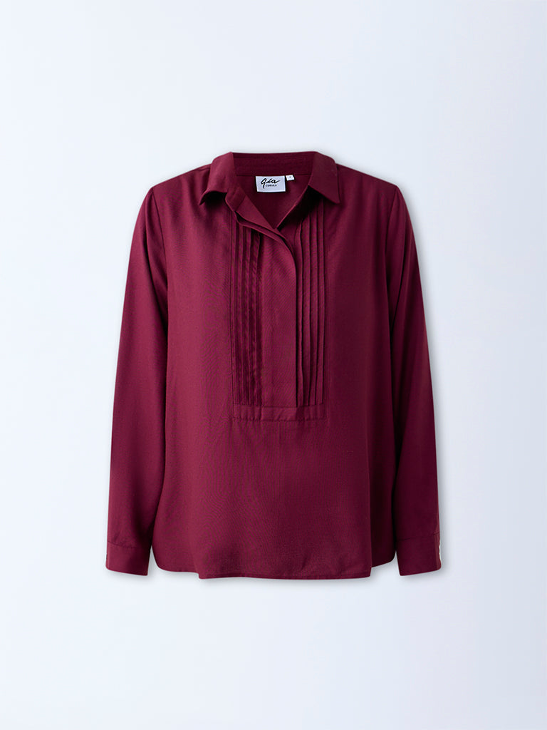 Gia Burgundy Pintuck Detailed Blouse