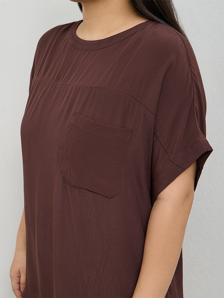 This dark brown top from Gia is a versatile staple for all your elevated basics. Styled with a round neck, dolman sleeves and a chest pocket, it is framed in an easy, relaxed silhouette. Made from soft, lightweight fabric, this is a dependable piece that is suited to both laid-back days and refined layering.