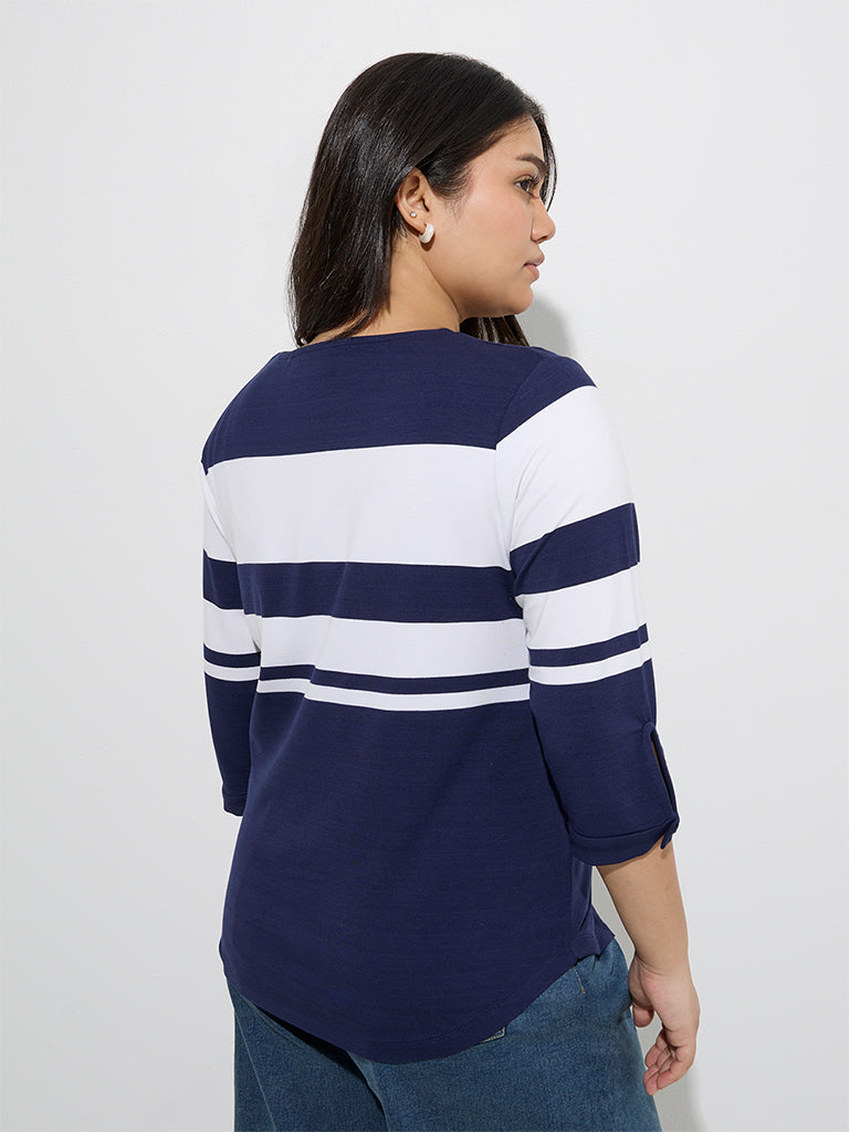 Gia Navy Colour-Blocked T-Shirt