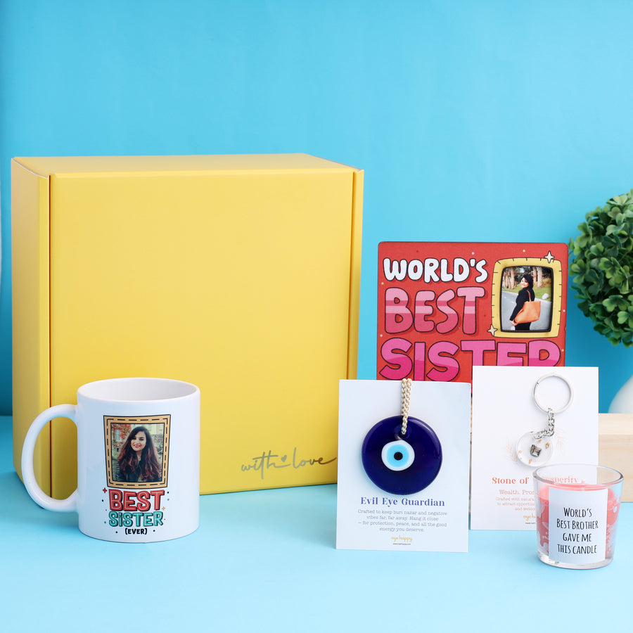 Evil Eye Charm – A timeless symbol of protection, this charm shields your sister from negative energy and harm, offering her a spiritual safeguard.