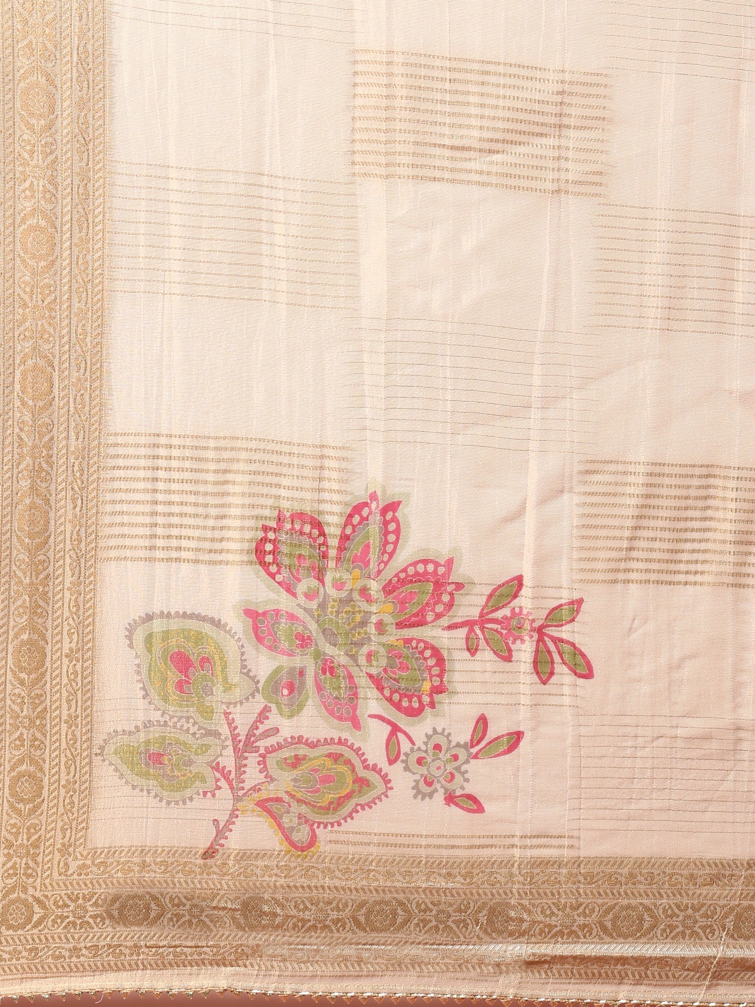 Gold Beige Tissue Aplique work three piece suit set