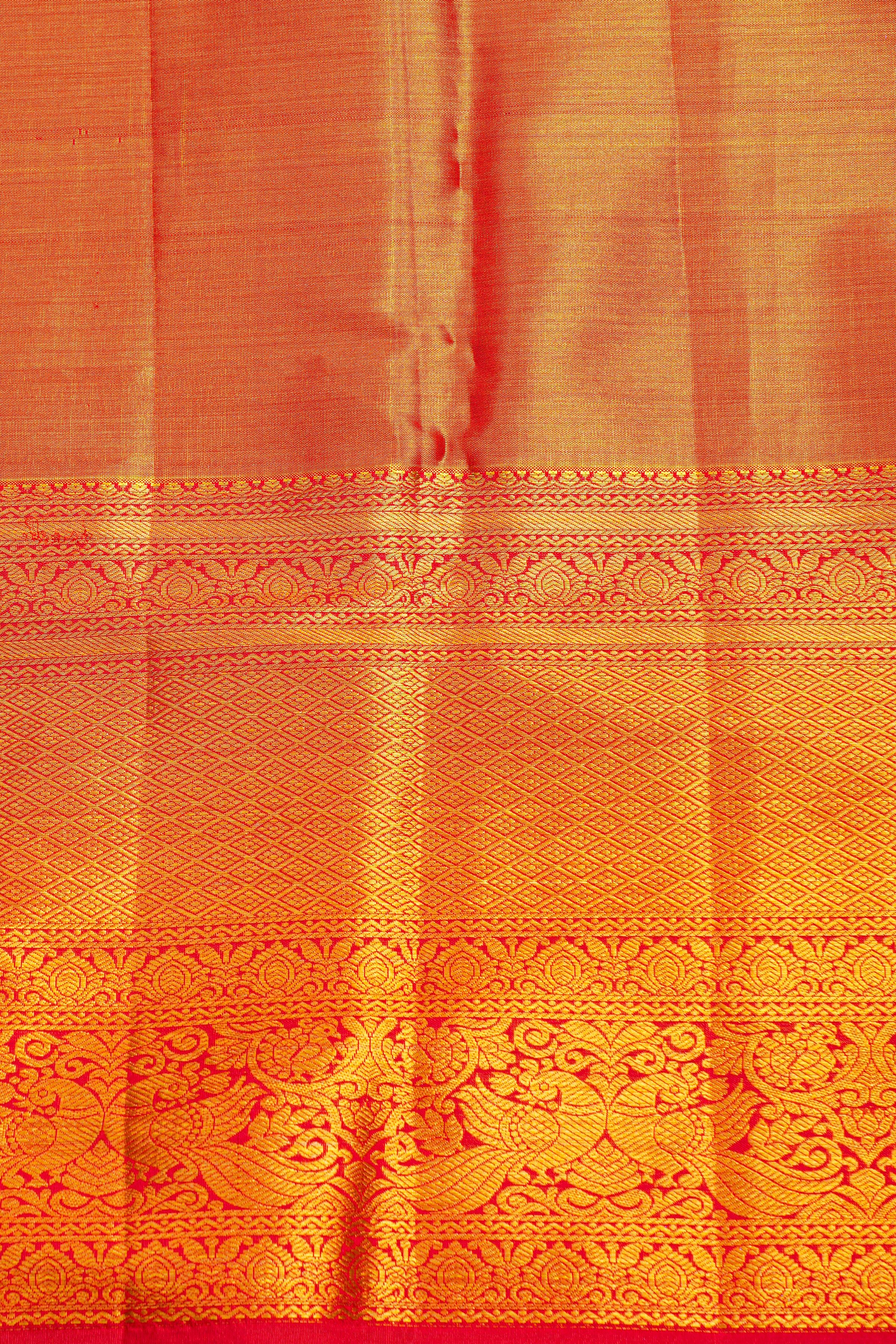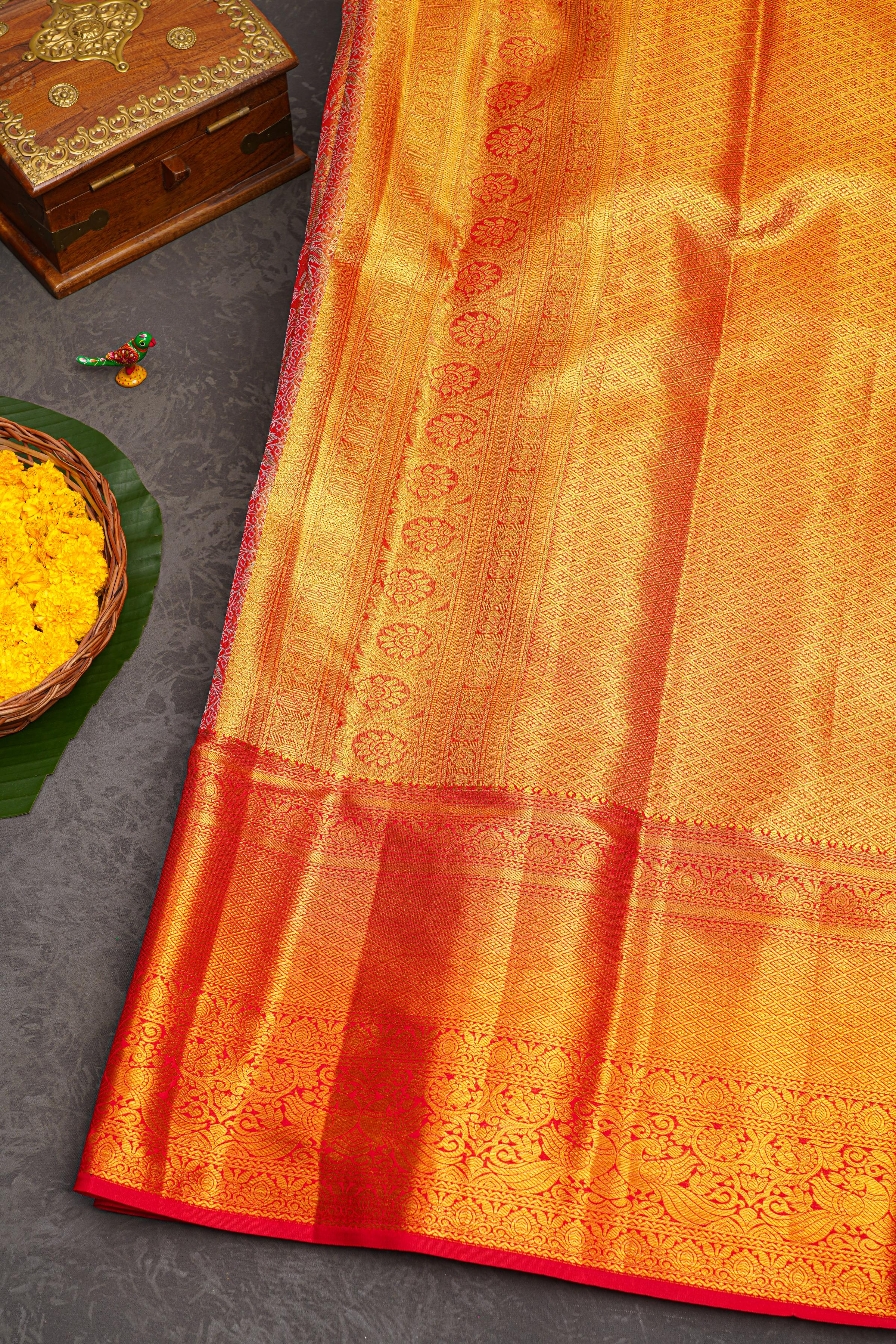 GOLD ORANGE and GOLD FLORAL JAAL SILK Saree with KANCHIPURAM
