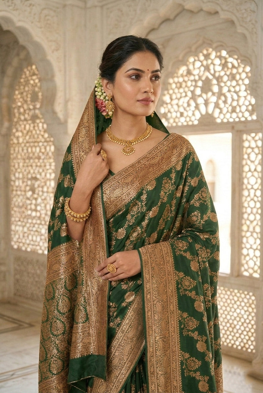 Green Banaras Floral Pattu Saree