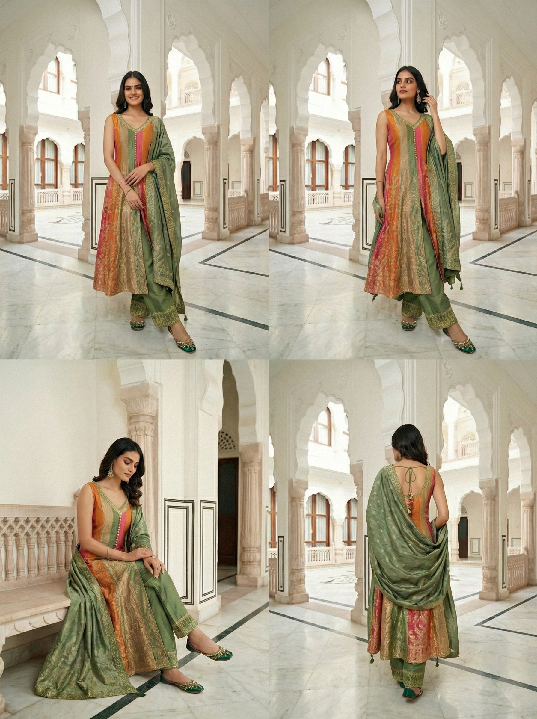 Elevate your ethnic wardrobe with this exquisite green silk Anarkali set, a timeless piece that seamlessly blends traditional craftsmanship with contemporary elegance. Crafted from premium silk fabric, this ensemble features intricate embroidery work that showcases meticulous artistry and attention to detail.  Perfect for weddings, festivals, or special gatherings, this set combines comfort with sophistication, making it an investment piece for your traditional collection.