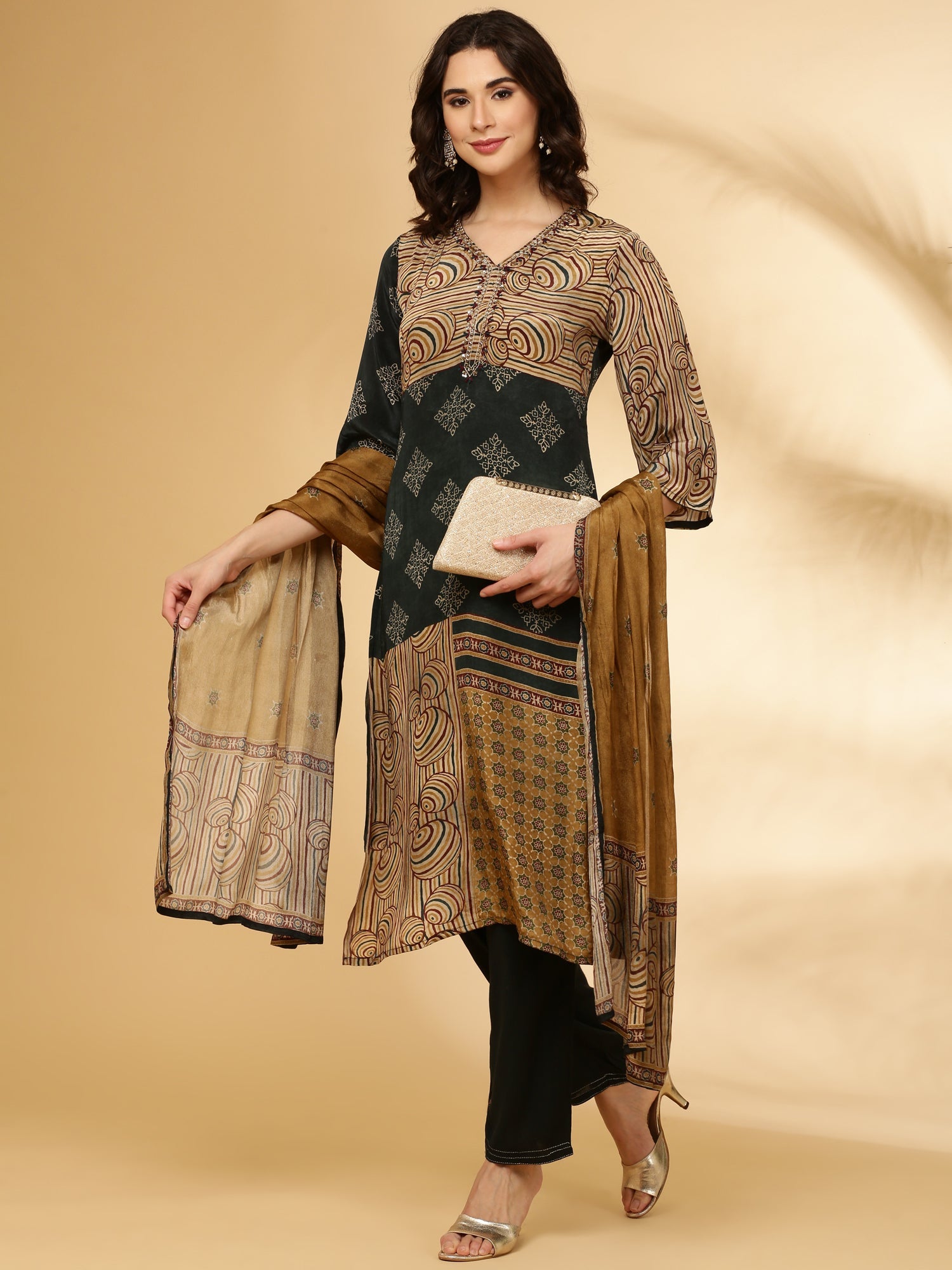 Elevate your wardrobe with this Grey Crepe Printed Three Piece Set, designed for effortless sophistication. Crafted from soft crepe fabric, it offers a comfortable fit and graceful drape. Featuring elegant prints, the set includes a top, coordinating bottoms, and a matching dupatta, creating a polished, cohesive look perfect for both formal occasions and refined everyday wear.