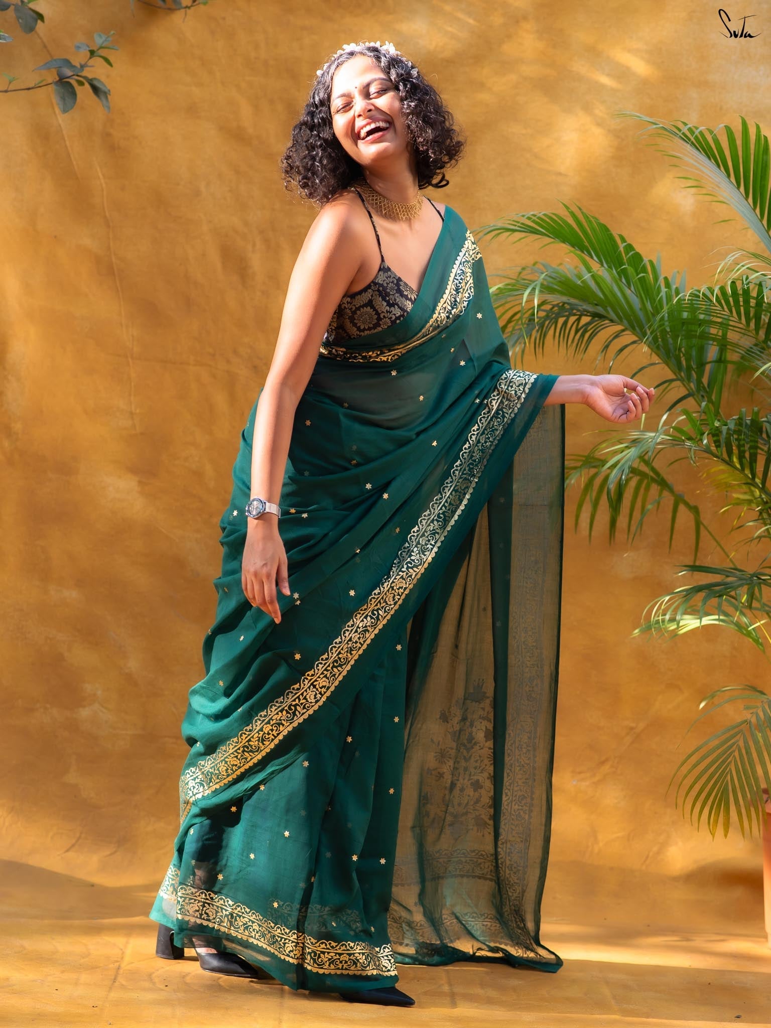 The mul cotton is what we call ˜made in heaven at Suta. Known in West Bengal as mul mul, the fabric is buttery soft and delicately beautiful. The weave of this fabric is very fine, and this lends a very fluid texture to it that makes draping it a breeze. It is truly like a hug that wraps you in its love!