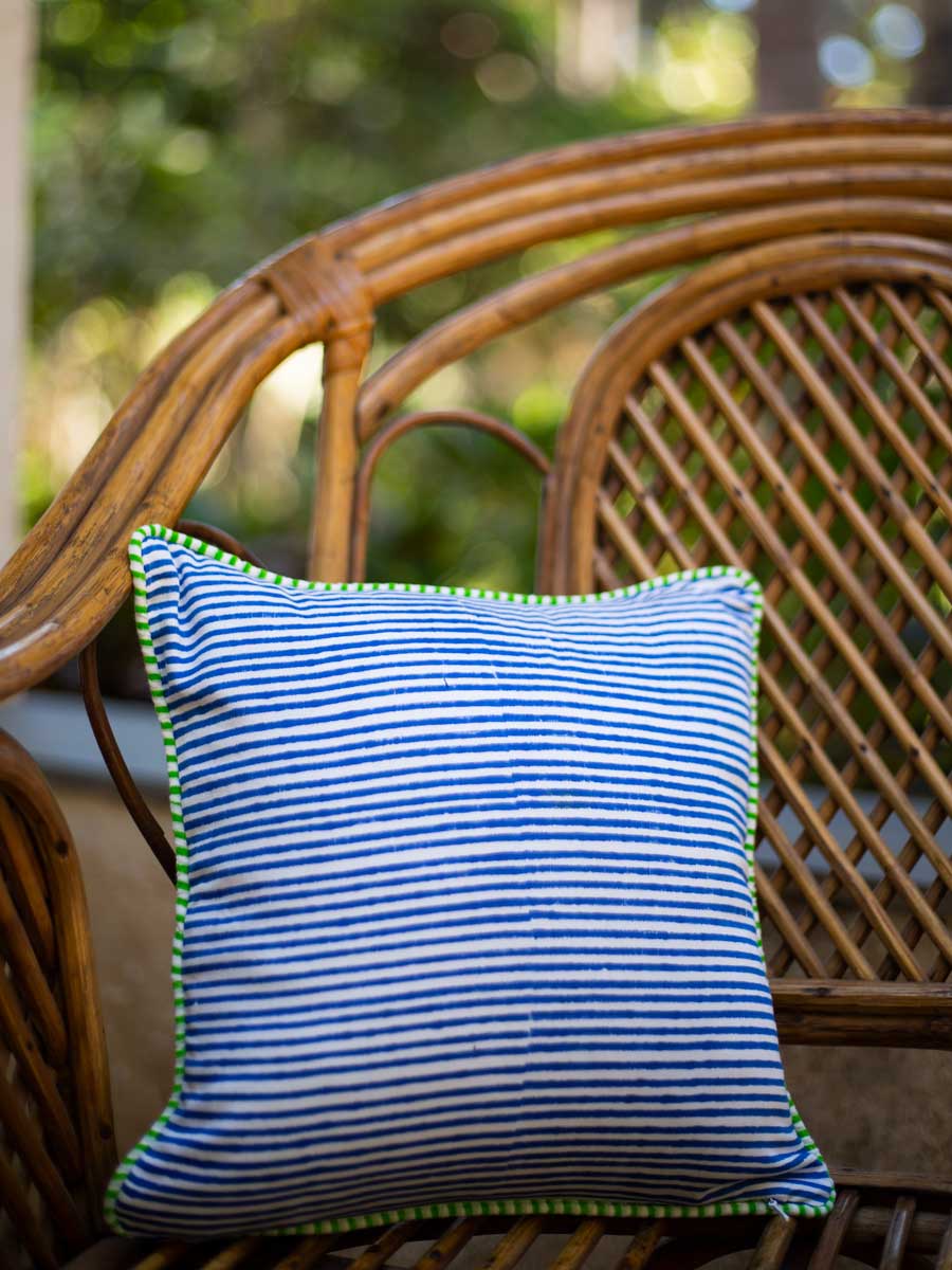 Heavenly Ride Block Printed Cotton Cushion Cover - 12 Inch