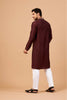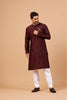 Description: Introducing the Men's Maroon Kurta with Bow & Arrow embroidery in golden zari thread! This stylish kurta is made from luxurious semi raw silk fabric, which is soft, comfortable, and perfect for any occasion. The maroon color is rich and bold, making this kurta a standout choice for formal events or casual get-togethers.This kurta is perfect for men who want to make a statement with their fashion choices. Whether you're attending a wedding or a formal dinner, this kurta is sure to turn heads. So why wait? Add this Men's Maroon Kurta with Bow & Arrow embroidery in golden zari thread to your wardrobe today and make a fashion statement like no other!