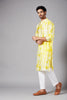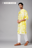 Description: Hilo Design collection features the Tintlo Yellow KURTA, made from a luxurious silk base, combining the beauty of Bandhani and Bomb tie-dye patterns. This Kurta exudes class and adds a touch of vibrant hues to your wardrobe. It is versatile, suitable for both casual and ethnic wear, and can be paired with Chudi pants or crop pants for a complete look.