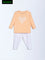 HOP Baby introduces a peach co-ord set styled with a t-shirt adorned with floral motifs arranged in a sweet heart shape. Features a round neckline, full sleeves and snap-button shoulders for parent-friendly dressing. Printed pants come with an elasticated waistband that keeps little ones comfortable all day. Made from pure cotton, offering gentle warmth and breathable softness. A charming, easy-wear outfit for daily comfort and playtime moments.