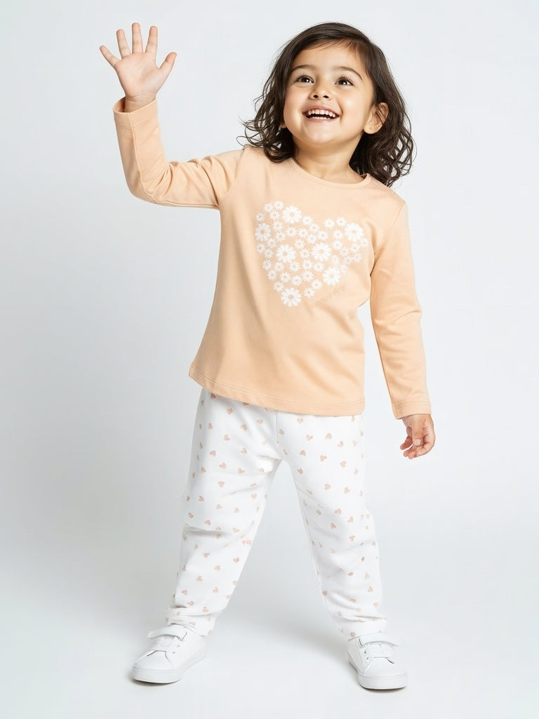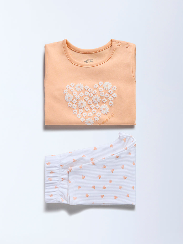 HOP Baby Peach Heart Printed Cotton T-Shirt and Pants Set - Exclusive