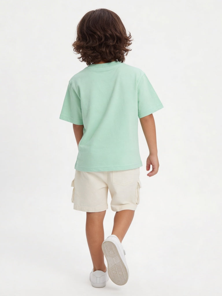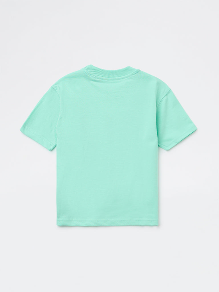 HOP Kids Boys Sea Green Printed Cotton T-Shirt