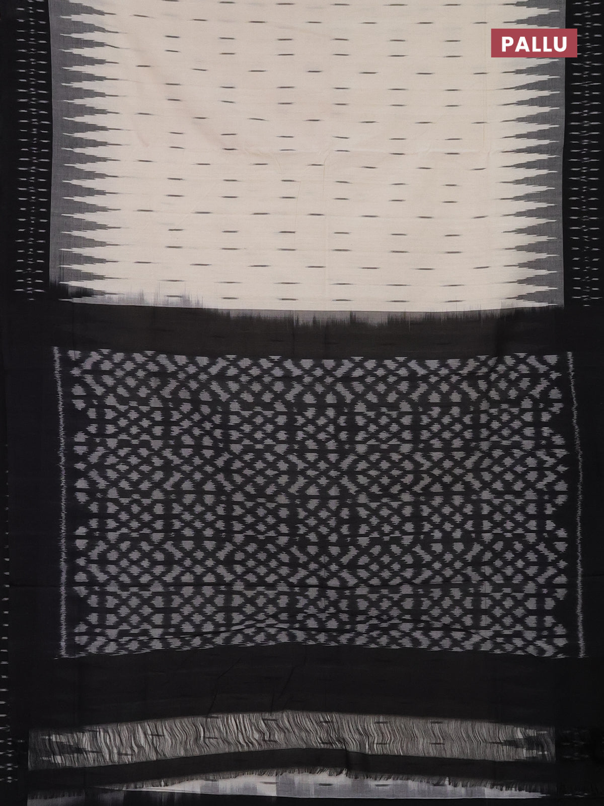 Ikat cotton saree off white and black with allover ikat butta weaves and temple design simple border