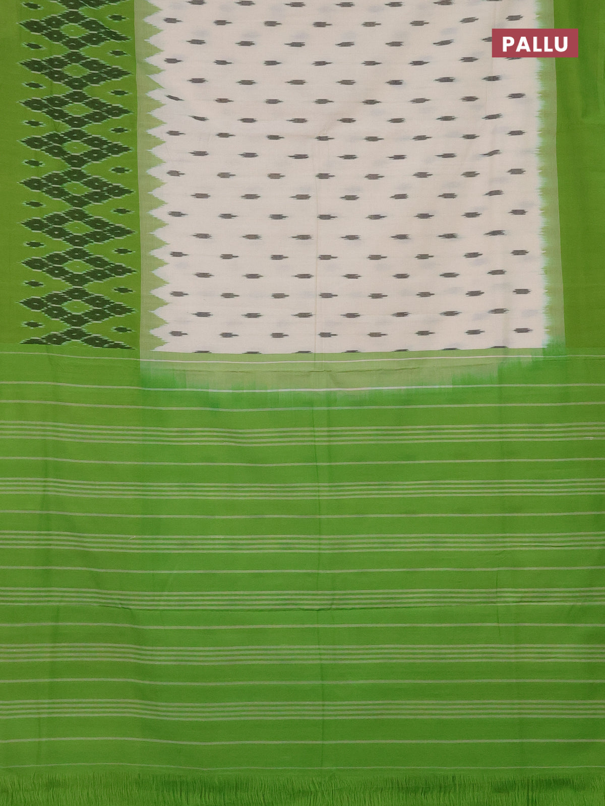 Ikat cotton saree off white and light green with allover ikat butta weaves and long ikat style border
