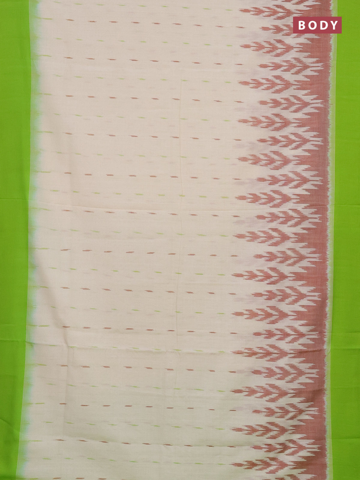 Ikat cotton saree off white and light green with allover ikat butta weaves and temple design simple border
