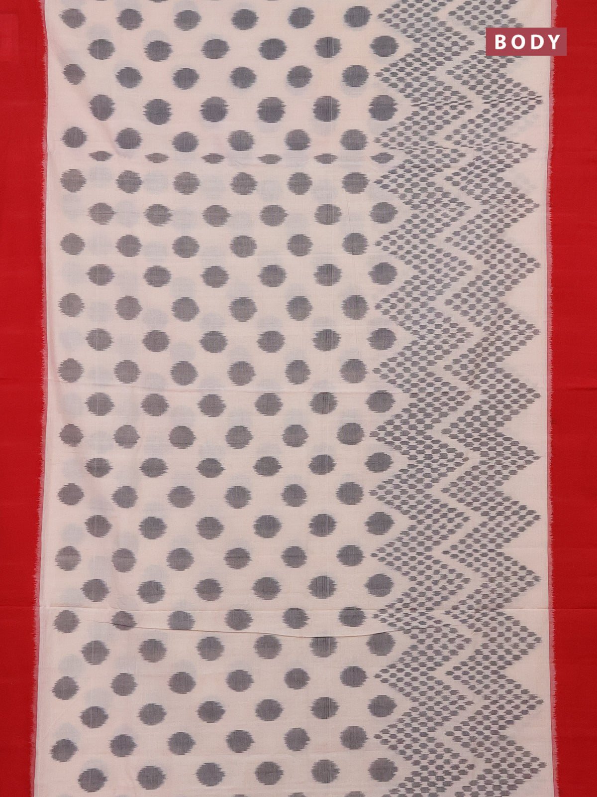 Ikat cotton saree off white and red with allover ikat butta weaves and simple border