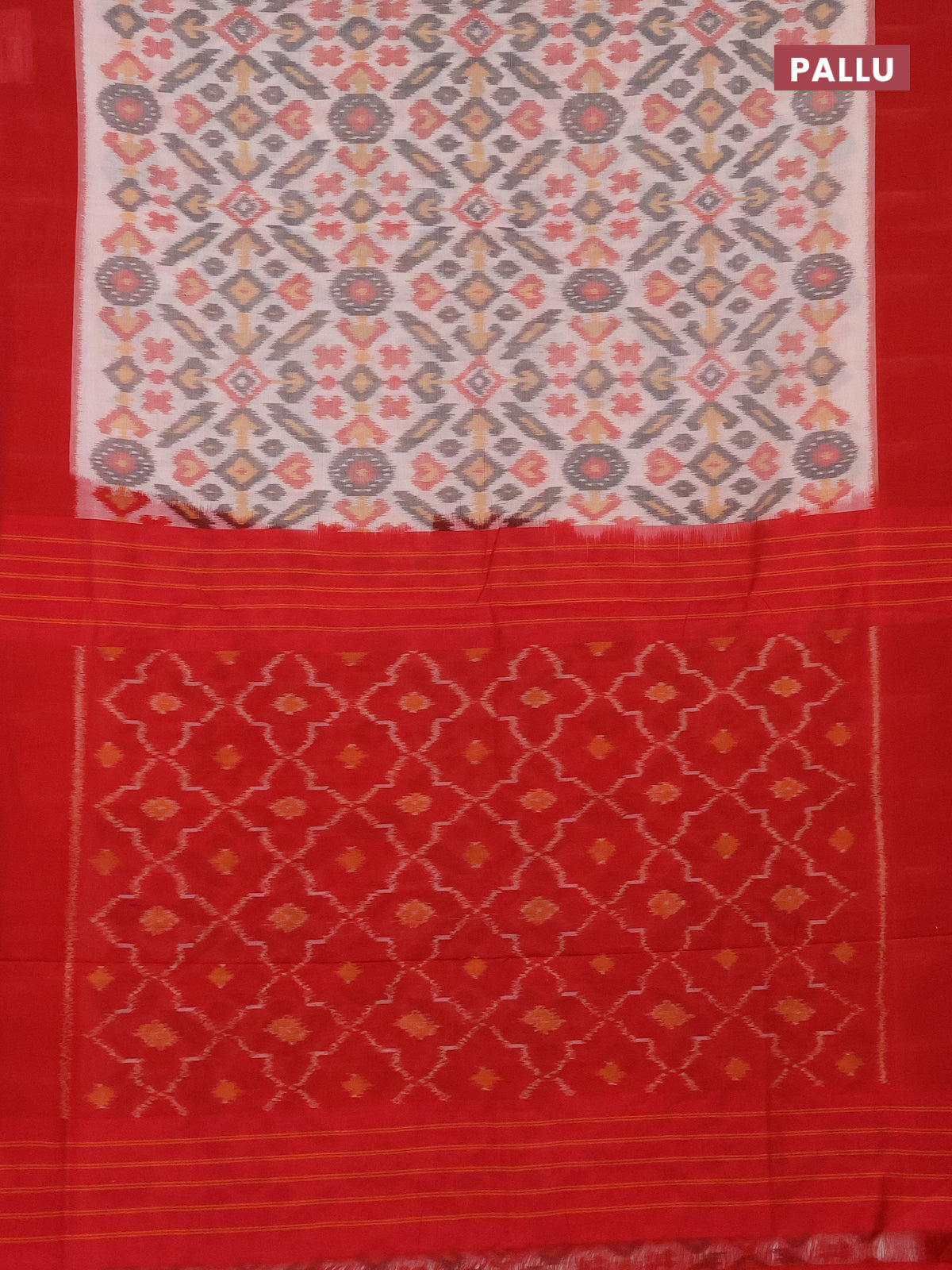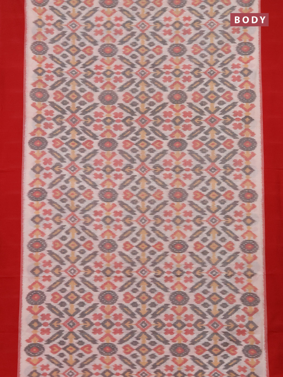 Ikat cotton saree off white and red with allover ikat weaves and simple border